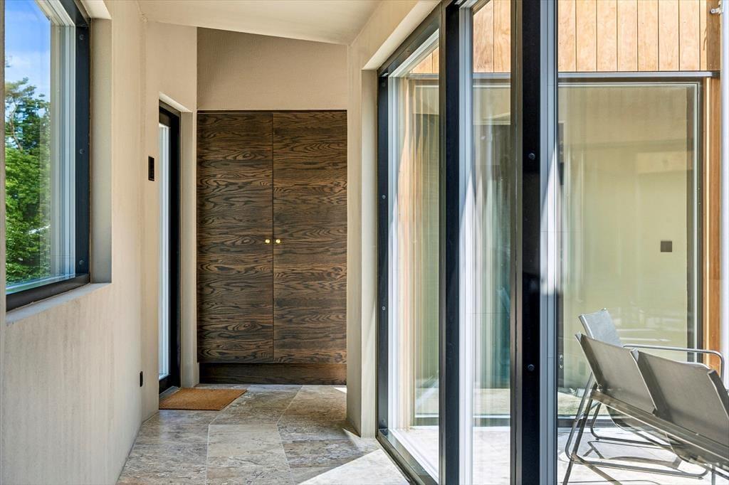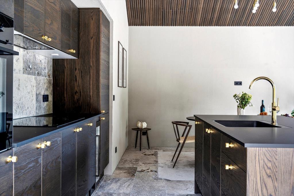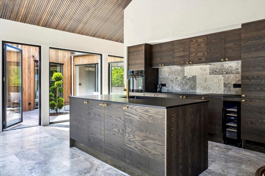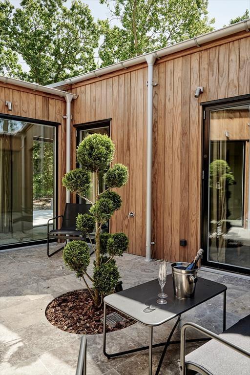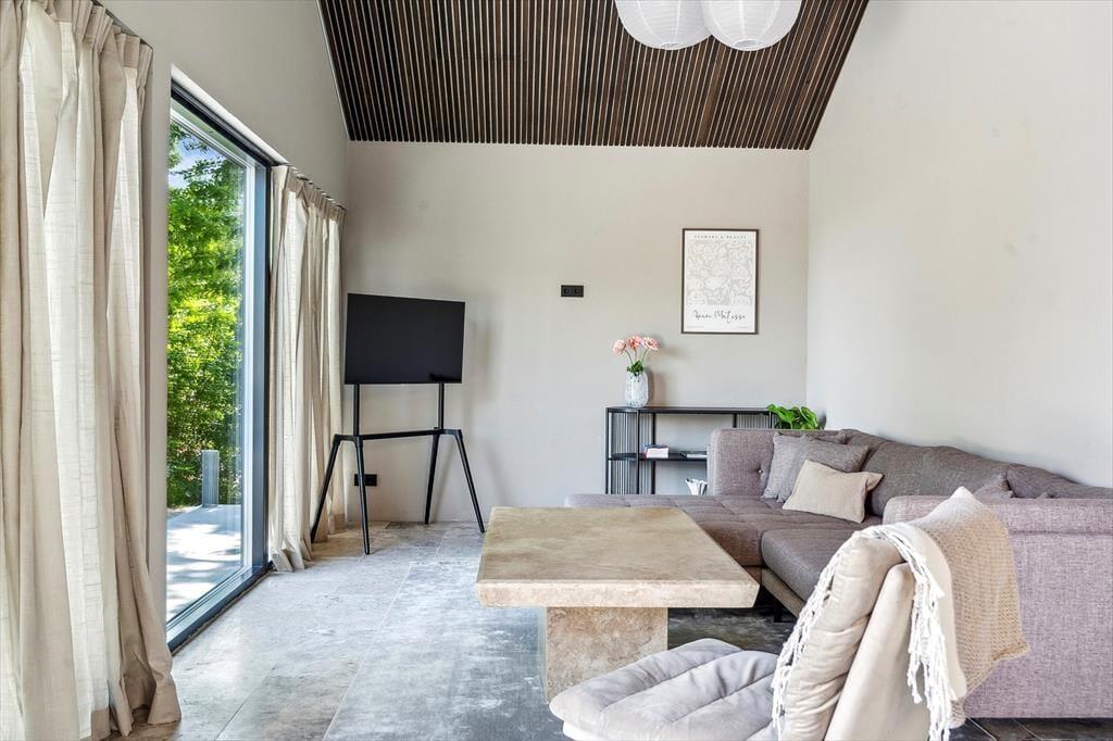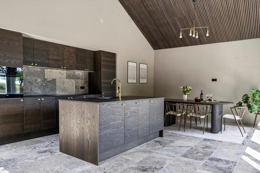 Der er kælet for detaljerne i dette nybyggede sommerhus, og det mærkes med det samme, man træder indenfor. De høje lofter og de store vinduespartier skaber en luftig og åben fornemmelse, hvor dagslyset strømmer ind og får rummene til at emme af fred og varme. Indretningen er stilren og moderne, men uden at miste sommerhusets helt særlige hygge – og her er skabt plads til både afslapning og samvær. Den åbne opholdsstue smelter sammen med køkkenet og bliver samlingspunktet for familiens hyggestunder, hvad enten det er til brætspil, madlavning eller en god film. Midt i huset finder du en lille, charmerende gårdhave, som giver ekstra lys og en helt særlig stemning til indendørslivet. Her kan du nyde en stille stund med en kop kaffe, mens solen spiller på væggene og stilheden sænker sig.