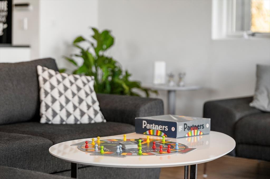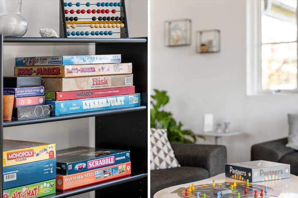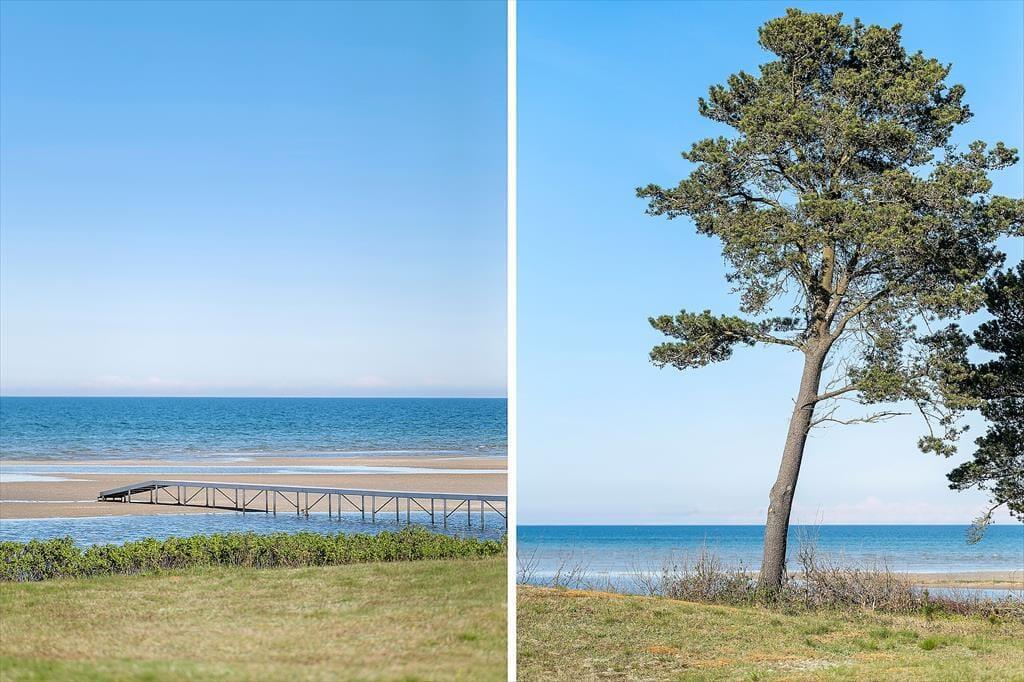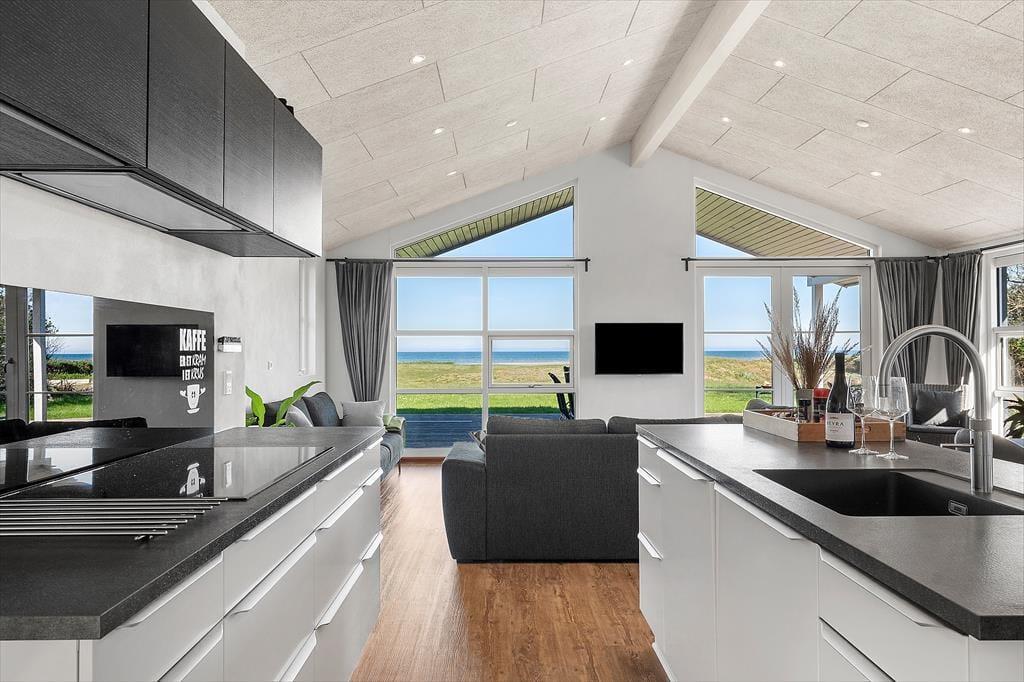Indendørs venter en stilren og moderne indretning, hvor lysindfaldet og den rolige atmosfære straks får dig til at sænke skuldrene. Her kan I være op til seks personer, og med to badeværelser er huset ideelt til både børnefamilier og vennepar, der vil nyde ferien sammen uden at gå på kompromis med komforten. Opholdsrummet er husets naturlige samlingspunkt med en dejlig stue og et køkken i åben forbindelse. Her kan dagens måltider tilberedes i fællesskab, mens nogen slår sig ned i sofaen med en god bog eller måske tænder for brætspillet. Store vinduespartier åbner op mod terrassen og havudsigten, og selv fra spisebordet kan du lade øjnene vandre over bølgerne, mens I nyder morgenkaffen. Indretningen er gennemtænkt, lys og enkel med et skandinavisk præg, der skaber en følelse af ro og velvære – præcis som en feriebolig skal gøre.