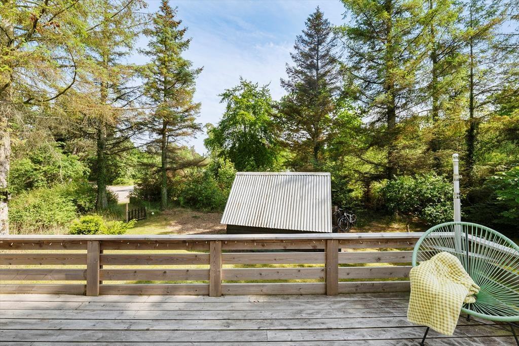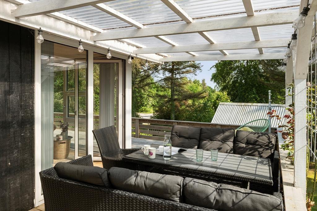 Rundt om hele huset breder der sig en dejlig terrasse, som giver dig masser af muligheder for at finde lige netop den solplet eller skyggefulde krog, du har brug for. Her kan du starte dagen med morgenkaffe under åben himmel, læne dig tilbage med en bog midt på dagen og samle familien til grill og aftenhygge, mens solen langsomt går ned bag trætoppene. Den lukkede have skaber en tryg ramme omkring udelivet – perfekt til legende børn, logrende hund og voksne, der vil nyde ferieidyllen i fred og ro. Og det bedste af det hele? Terrassen og haven føles som en naturlig forlængelse af huset, så det er nemt at tage ferielivet med sig ud i det fri. Her er plads til både aktivitet og afslapning, og når vejret er til det, er det oplagt at lade alle måltider finde sted udendørs.