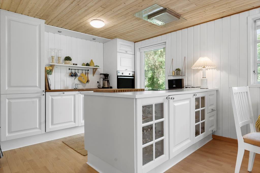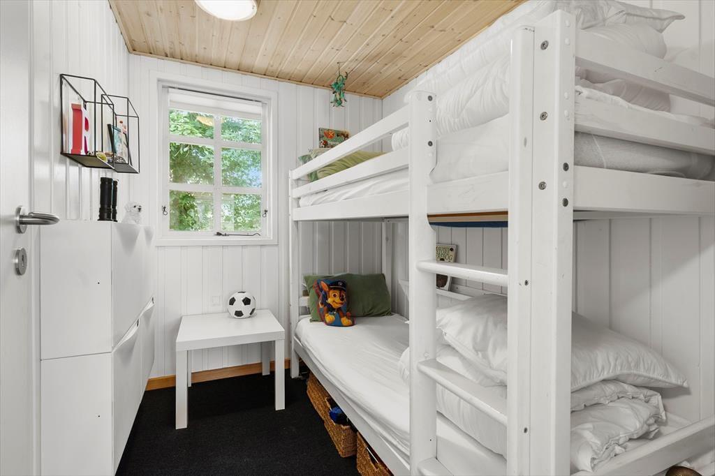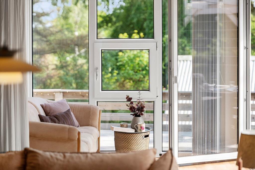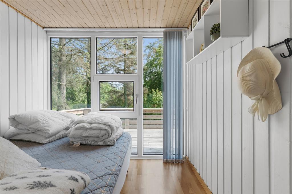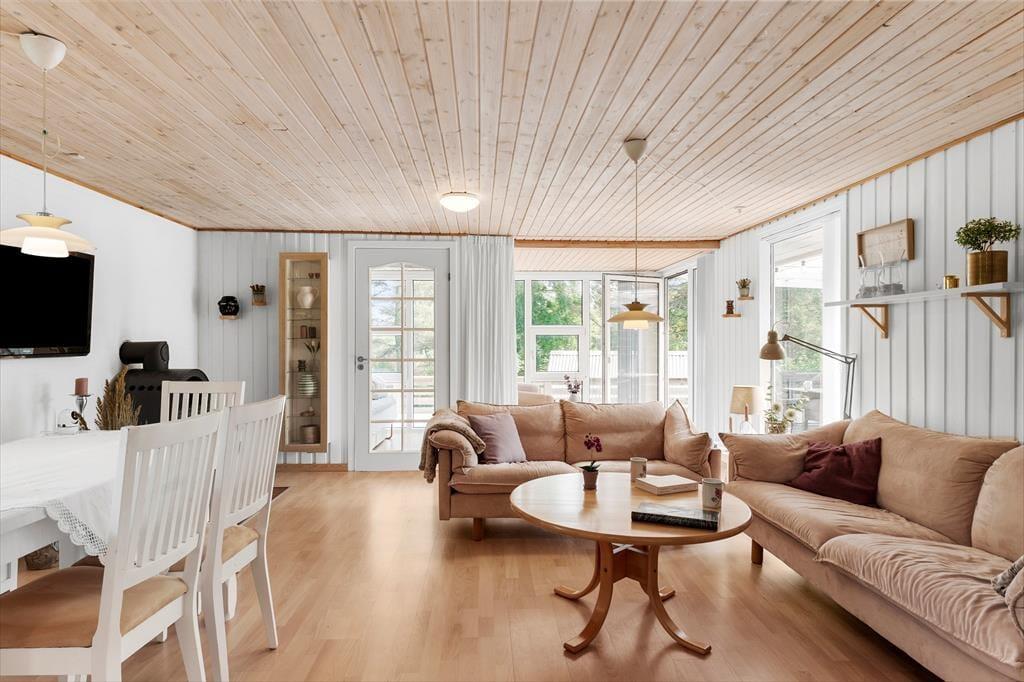 Indenfor mødes du af en lys og indbydende atmosfære, hvor sommerhusstemningen straks sætter ind. Indretningen er varm og hjemlig med hyggelige detaljer og en dejlig rummelighed, der gør det nemt at finde sig godt til rette. Her er tænkt over komforten, og man fornemmer straks, at huset er skabt til hyggelige feriedage med familien eller gode venner. Den åbne planløsning gør det let at være sammen – uanset om nogen er i gang med madlavningen, mens andre læser, spiller spil eller bare slapper af med en god film i stuen. De store vinduespartier sørger for et naturligt lysindfald, og skaber en rolig og afslappende stemning i alle rum. Huset har plads til seks personer, og du må også gerne tage familiens hund med – den vil med garanti nyde godt af både det trygge indeklima og den lukkede have udenfor.