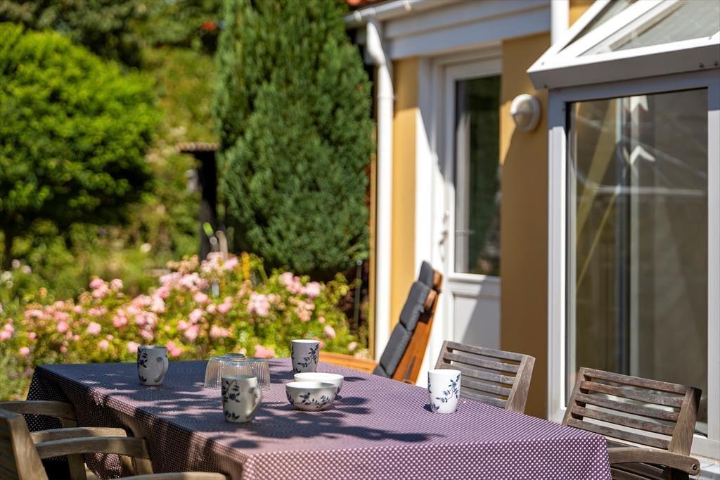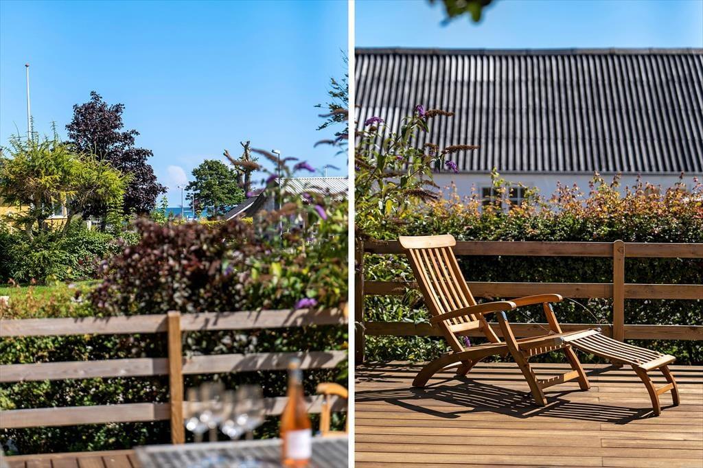 Sommerhuset har en dejlig træterrasse med havkig, der fungerer som en naturlig forlængelse af opholdsrummet. Her kan I nyde morgenkaffen, mens solen langsomt stiger over Kattegat, eller tage aftensmåltidet med ud og lade grillen sørge for middagen. Terrassen byder på behagelige havemøbler, så både børn og voksne kan slappe af, mens de nyder udsigten og den friske havluft. Den rolige beliggenhed giver mulighed for at lade timerne flyde, mens man lytter til bølgernes sagte brusen og fuglene, der kvidrer i nærheden. Selvom huset ligger centralt i Øster Hurup, mærker man tydeligt, hvordan det fri og rolige uderum inviterer til uforstyrret ferieidyl.
