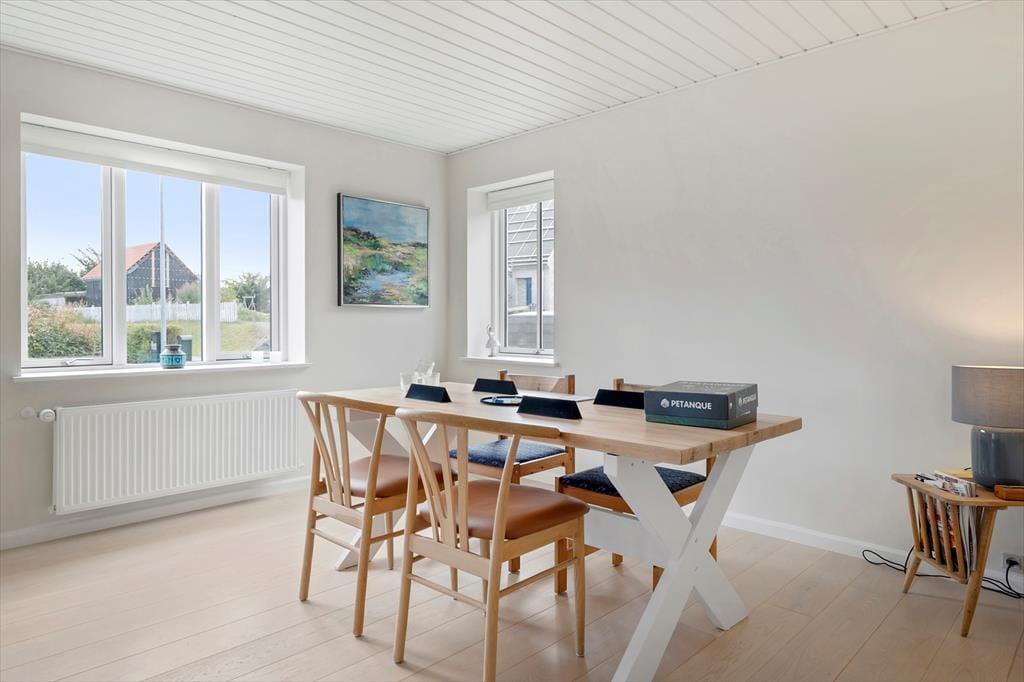 Indenfor byder sommerhuset på en varm og indbydende atmosfære, hvor lyse farver og hyggelige detaljer skaber rammerne om afslapning og samvær. Opholdsrummet fungerer som husets hjerte med komfortable siddepladser, hvor både bøger, spil og gode samtaler finder sin plads. Her kan I hygge jer med film på fladskærmen eller blot nyde hinandens selskab i de rolige omgivelser. De intime og funktionelle rum gør det nemt at trække sig tilbage, hvis nogen ønsker en stille stund, mens andre stadig kan nyde samværet i stuen. Det er et hus, hvor små hverdagsglæder som en lun kop te, en hyggelig læsekrog eller stille musik skaber de perfekte rammer for ferien.