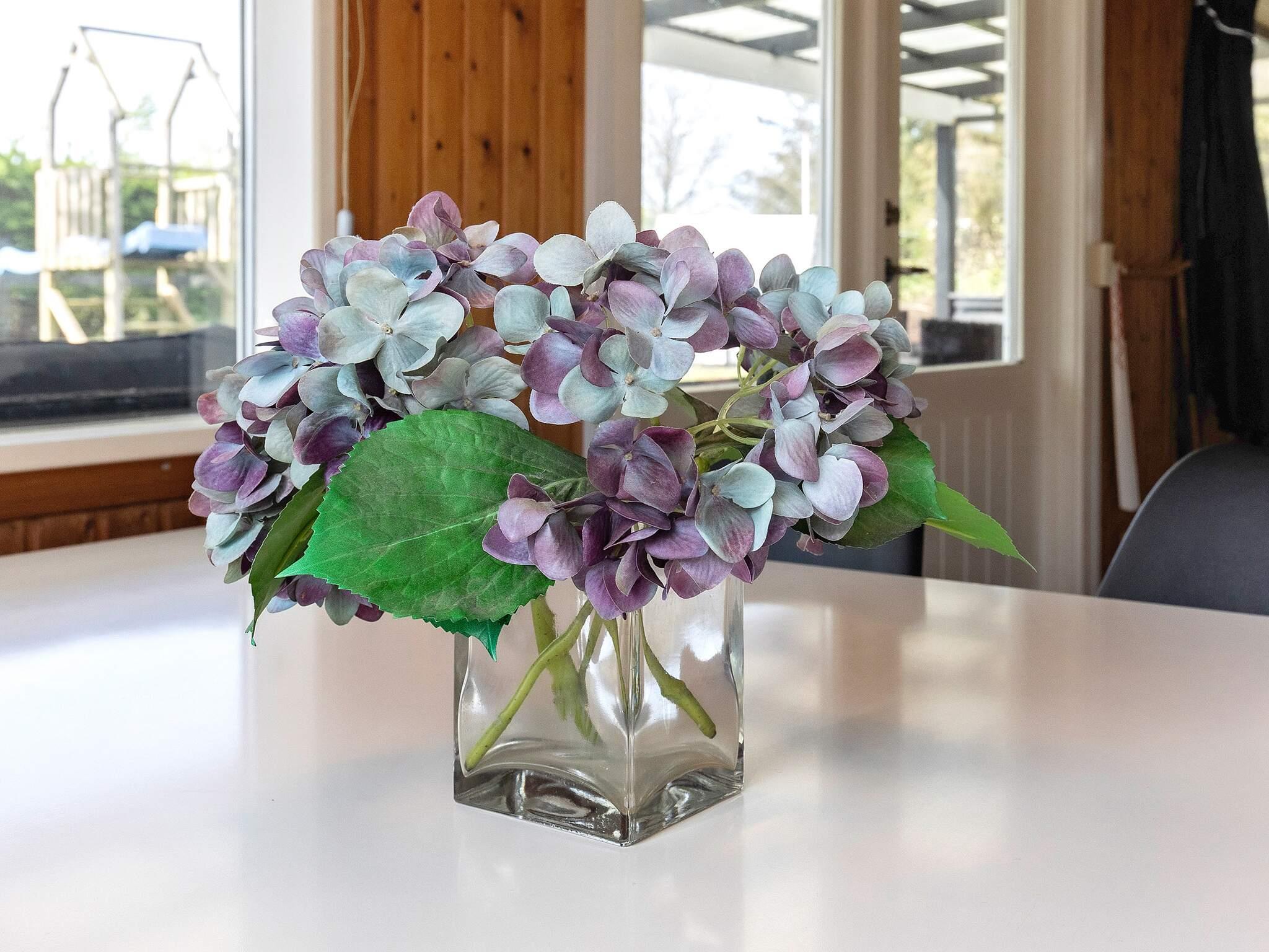 Indenfor byder huset velkommen med en lys og luftig stue, hvor store vinduespartier bringer udsigten til haven helt indendørs. Dette lyse rum er designet til komfort og samvær, uanset om du er samlet omkring spisebordet til et hjemmelavet måltid eller slapper af på sofaen efter en dag med udforskning. Den åbne planløsning flyder naturligt ind i køkkenet, som er veludstyret til nem feriemadlavning. Herfra kan du træde direkte ind i forhaven, hvilket gør det nemt at kombinere indendørs komfort med udendørsliv.
