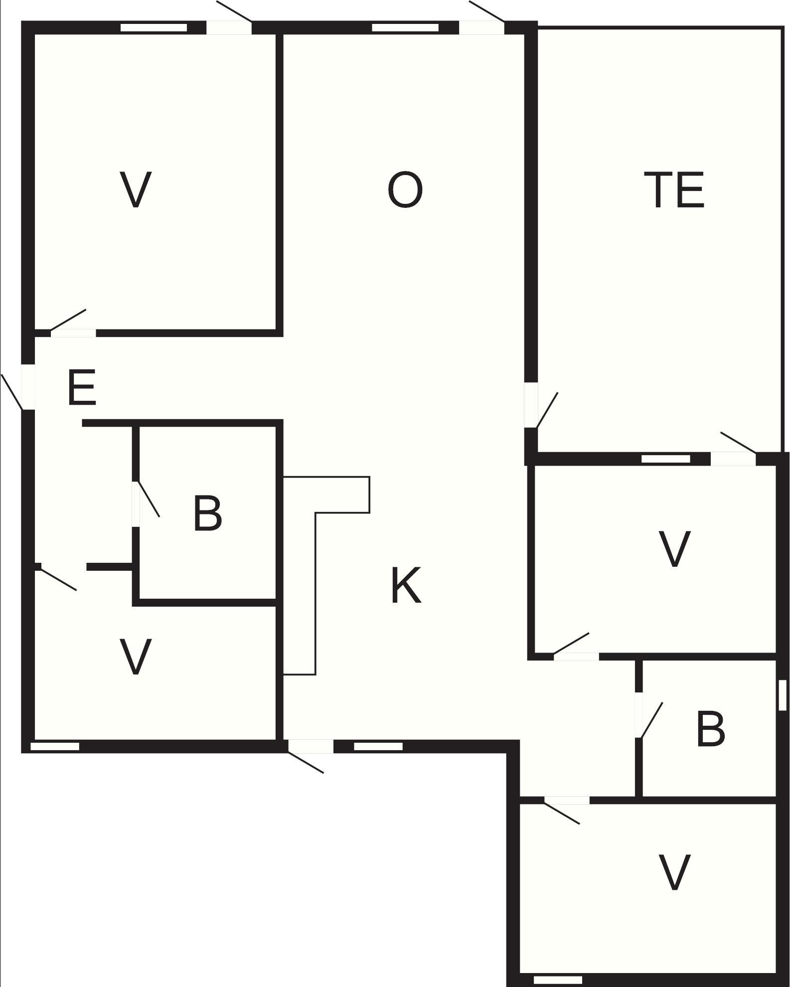 4 Soveværelser: (2S)+(2S)+(2K)+(1DS+1S), barneseng