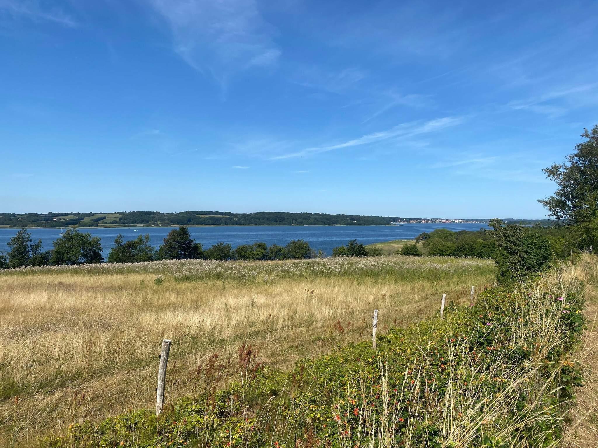 Køkken med lille spiseplads og entre med udgang til lille have. Der er