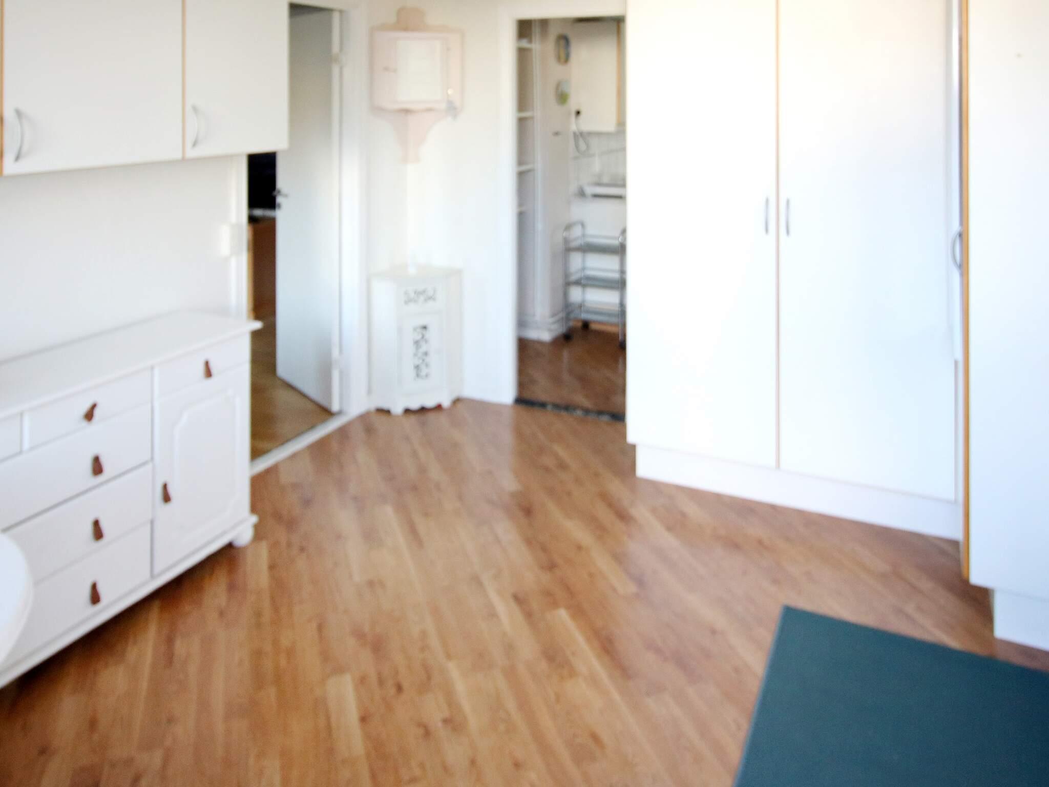 Lejlighed beliggende i stueetagen af et stuehus centralt i Hadsund by. Stor og lys stue med sofa og spiseplads.