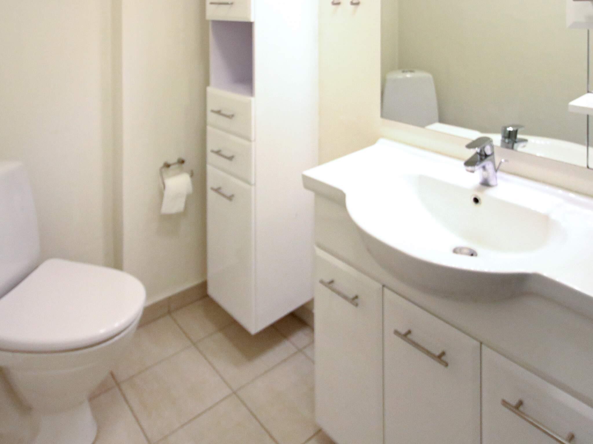 soveværelse med en dobbelt sovesofa samt et gennemgangsværelse med en lille 3/4-seng (120x200) samt et badeværelse med bruser og toilet.