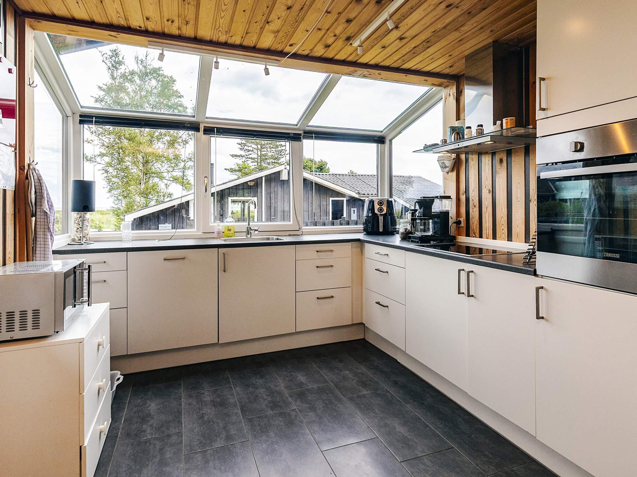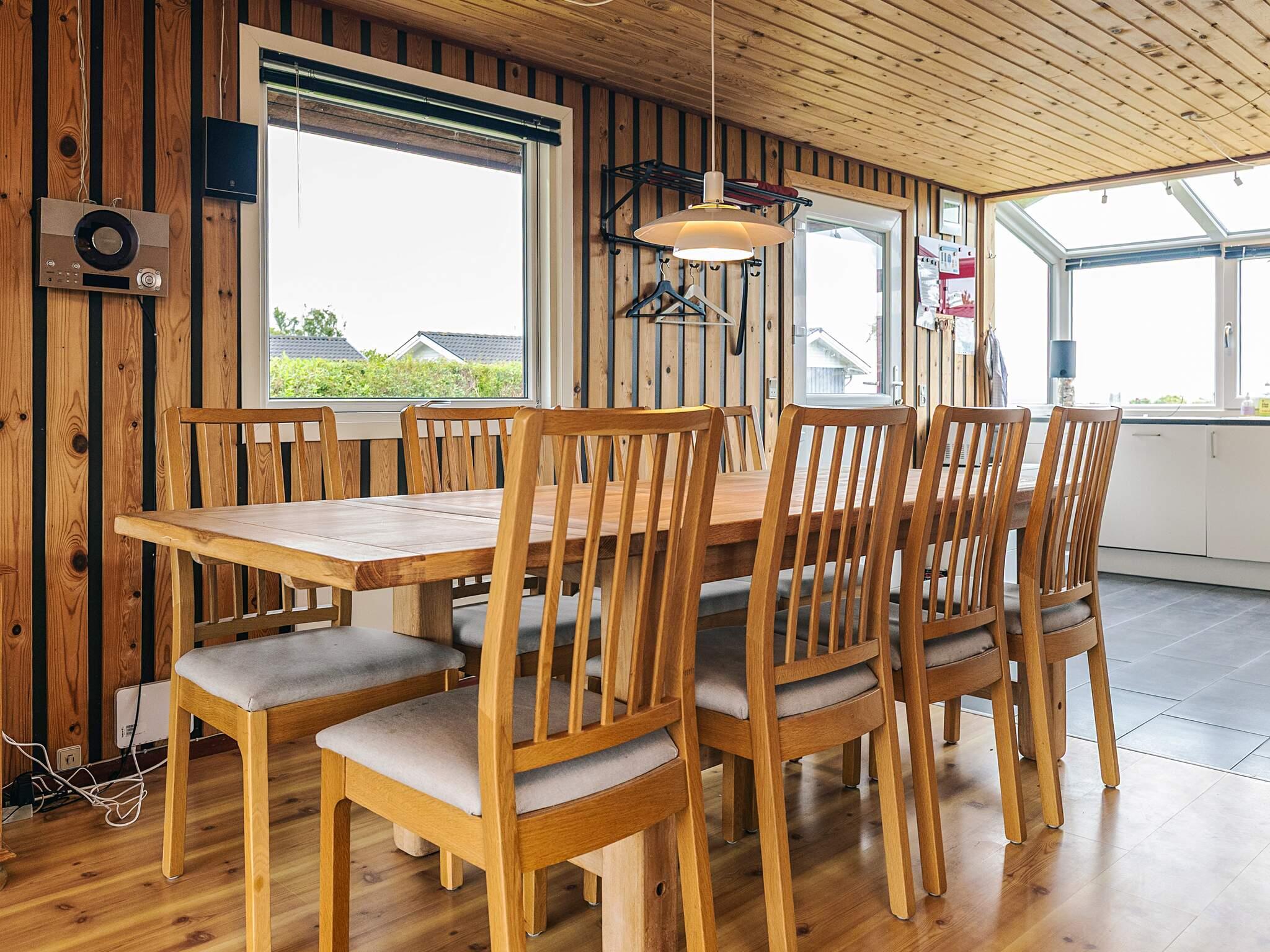 Lyst køkken med udsigt over vandet, køkkenet ligger i åben forbindelse med spisestuen og stuen med brændeovn og varmepumpe. Fra stuen er der udgang til den en stor træterrasse og have med gyngestativ og legeredskaber. 1 dobbeltværelse med 2 senge enkelt/dobbelt et værelse med 2 senge enkelt/dobbelt og 2 køjesenge. Badeværelse med bruser og toilet. Der er et stort anneks med 3/4 seng og 2 køjer. Teknikrum med vaskemaskine