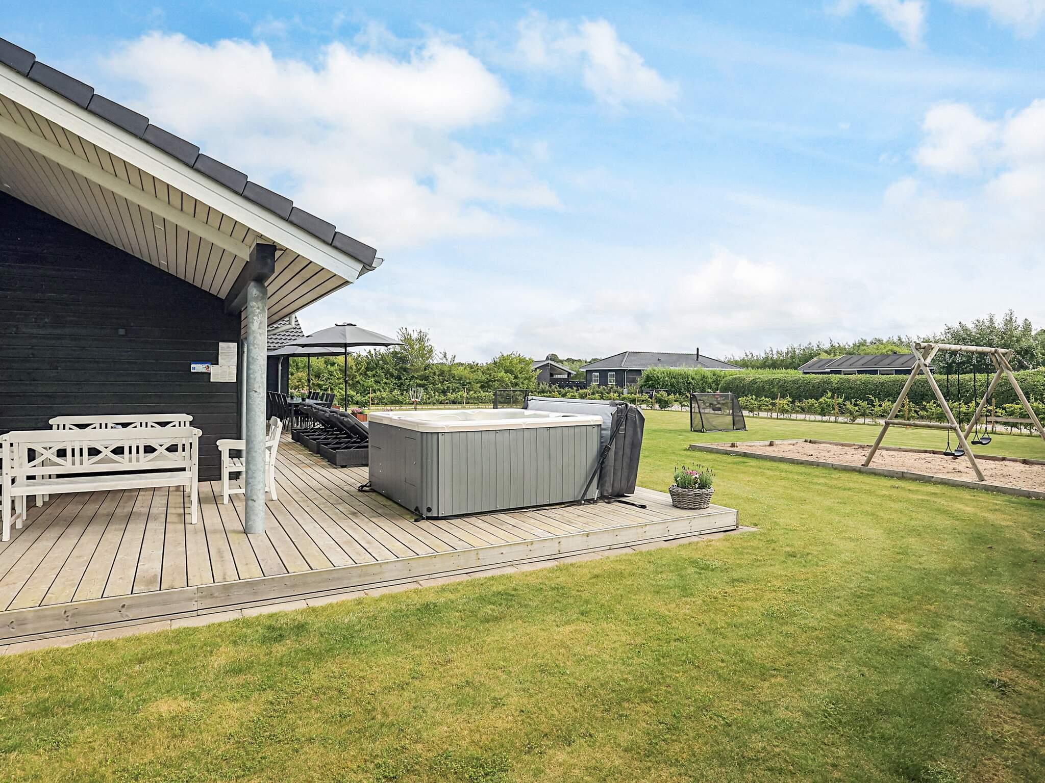 Flot sommerhus i Øster Hurup med stor terrasse, whirlpool og aktivitetsrum nær børnevenlig strand.