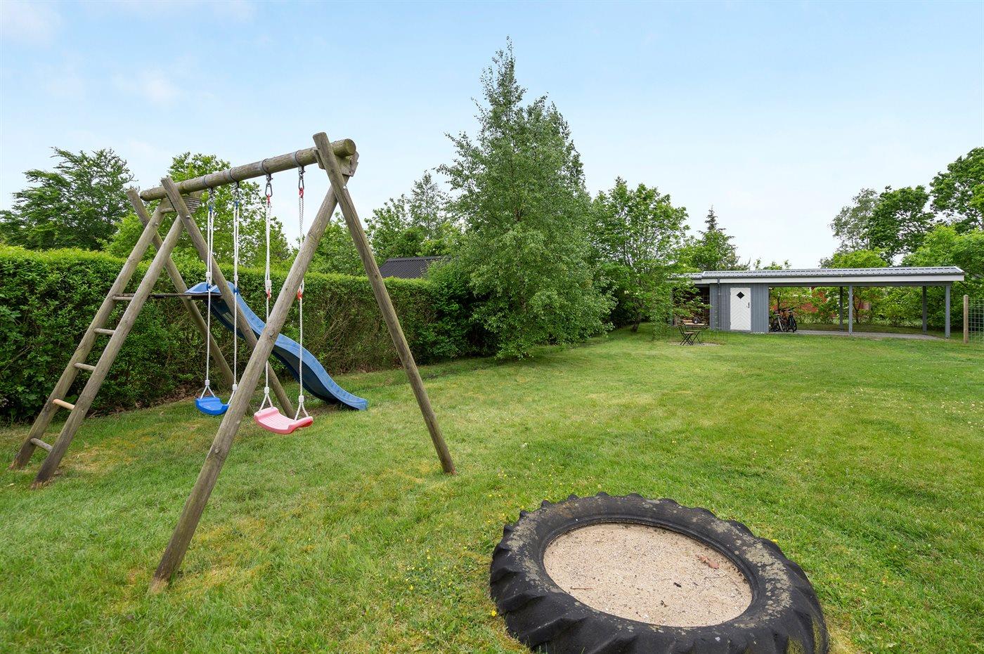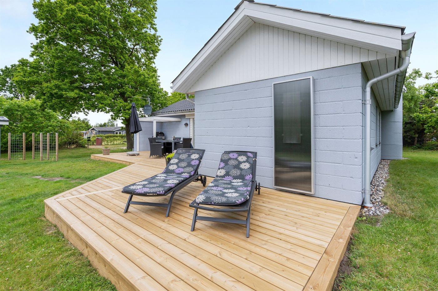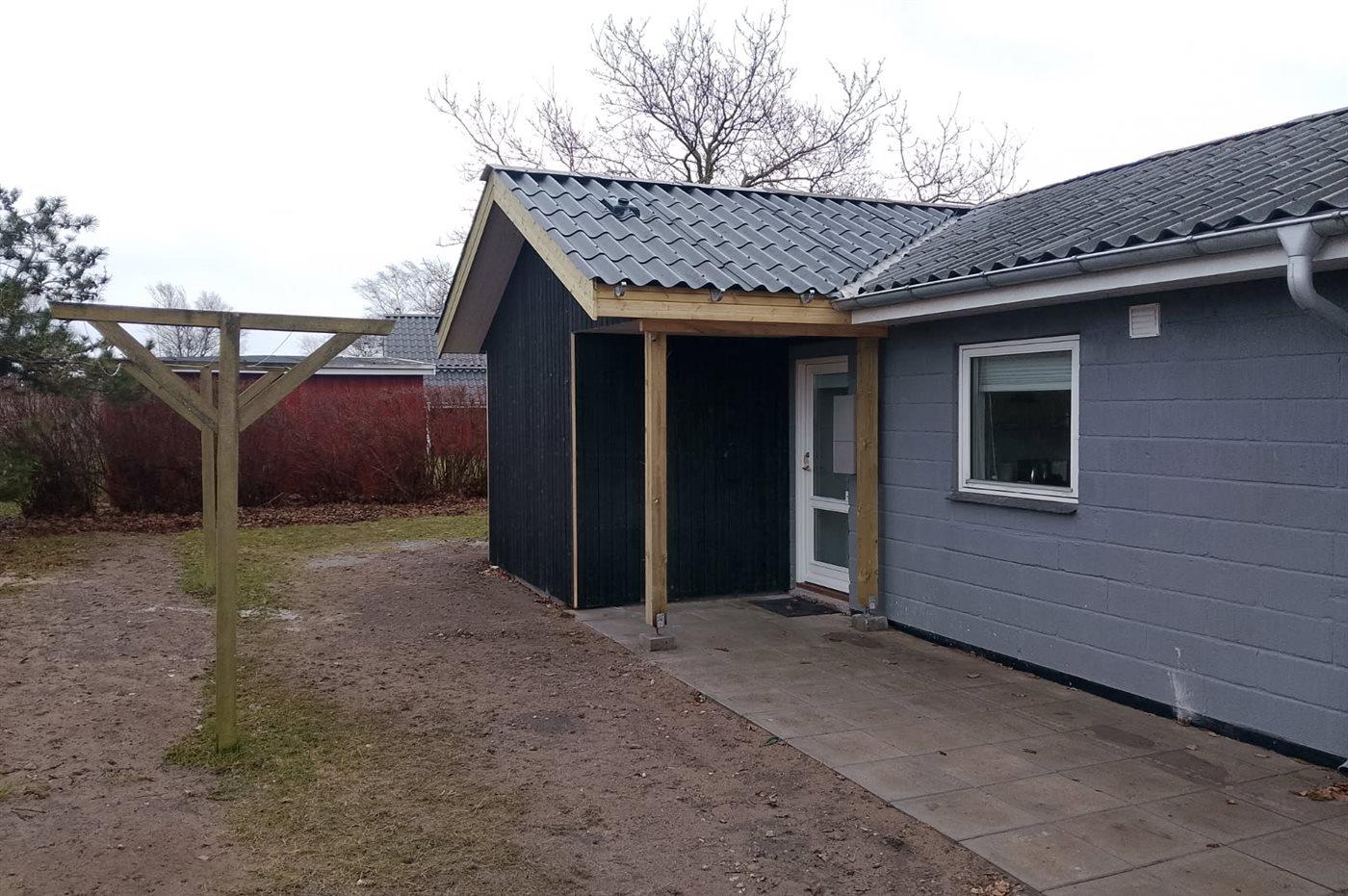 Ferieboligen er beliggende på en 830 m² stor naturgrund. Der er 800 m til havet. Nærmeste forretning er beliggende i en afstand af 900 m. Til ferieboligen hører 42 m² terrasseareal. Desuden er der 4 m² overdækket terrasse. Der er redskabsrum. Gynge. Sandkasse. Grill til rådighed. Der er carport til rådighed. Der er installeret stik til opladning af elbil.