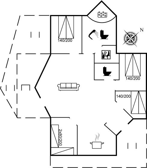 Der er i alt 4 soveværelser. Sovepladserne fordeler sig på: 6 sovepladser i dobbeltsenge. 2 sovepladser i enkeltsenge. Derudover er der 1 stk. barneseng.