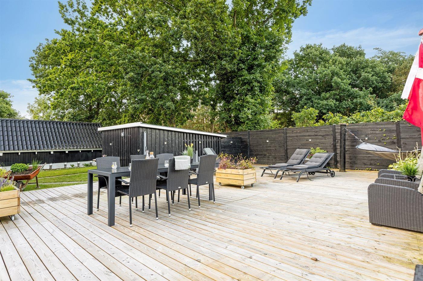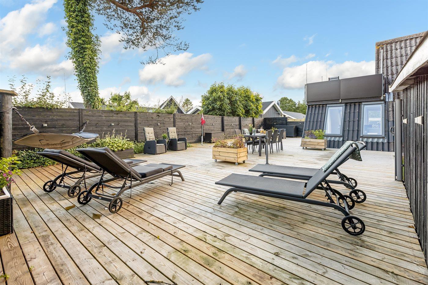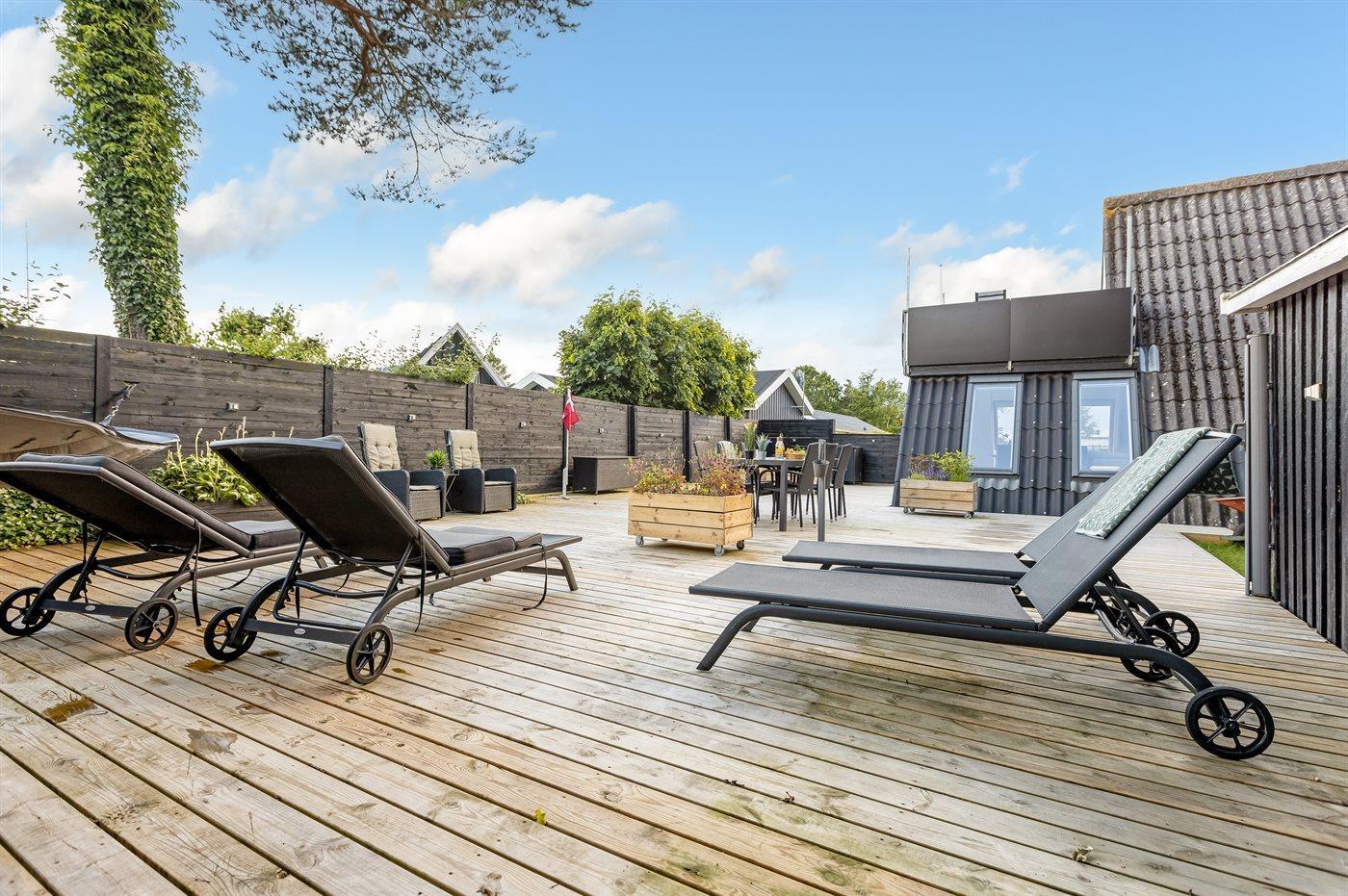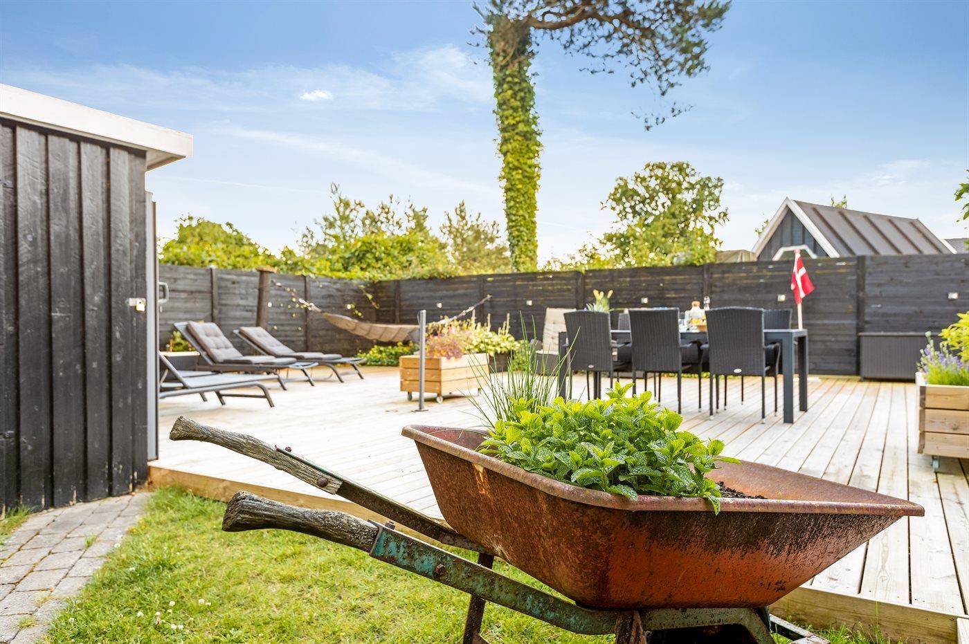 Ferieboligen er beliggende på en 761 m² stor havegrund. Der er 600 m til havet. Nærmeste forretning er beliggende i en afstand af 1000 m. Til ferieboligen hører 194 m² terrasseareal. Udgang til altan. Gynge. Sandkasse. Legehus. Gasgrill står til rådighed. Parkering ved ferieboligen.