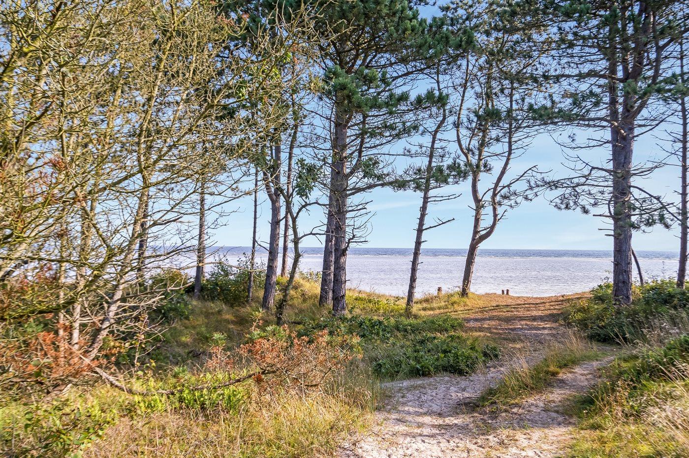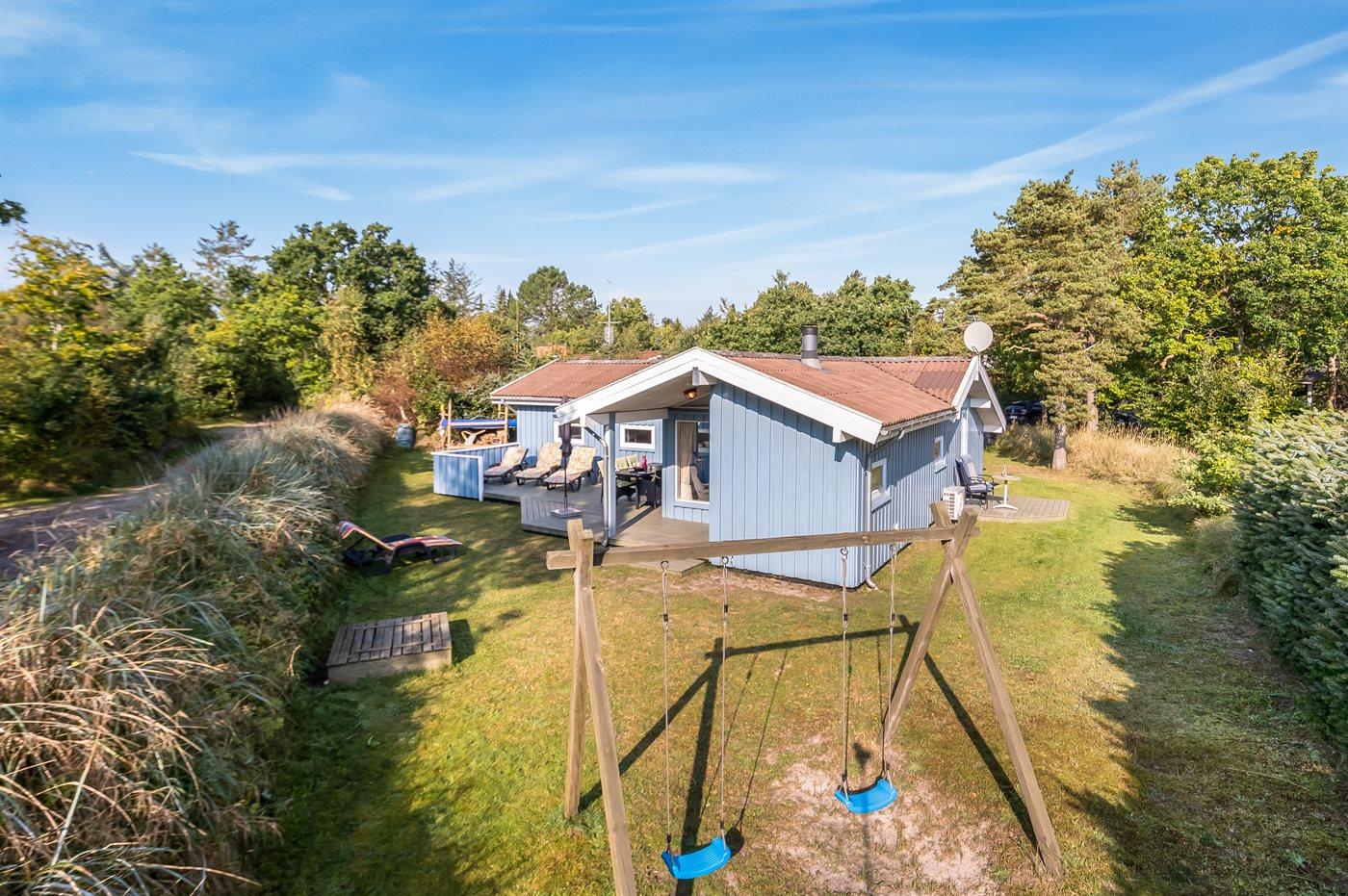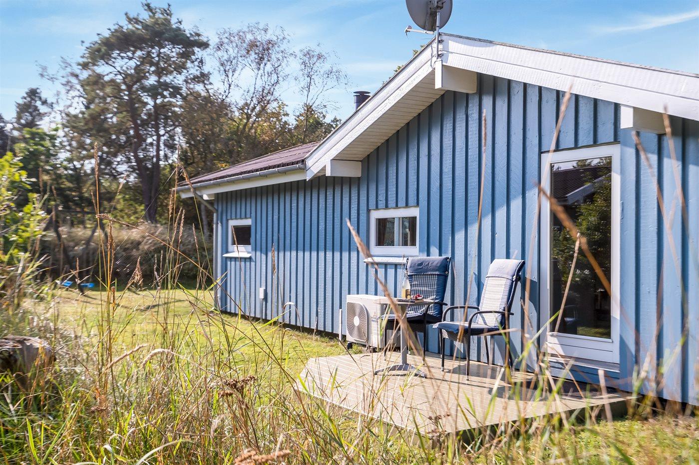 Ferieboligen er beliggende på en 1080 m² stor naturgrund. Der er 100 m til havet. Nærmeste forretning er beliggende i en afstand af 2000 m. Til ferieboligen hører 45 m² terrasseareal. Gynge. Sandkasse. Grill til rådighed. Der er installeret stik til opladning af elbil. Type 2 stik. Med 11 kW ladeeffekt. Parkering ved ferieboligen.