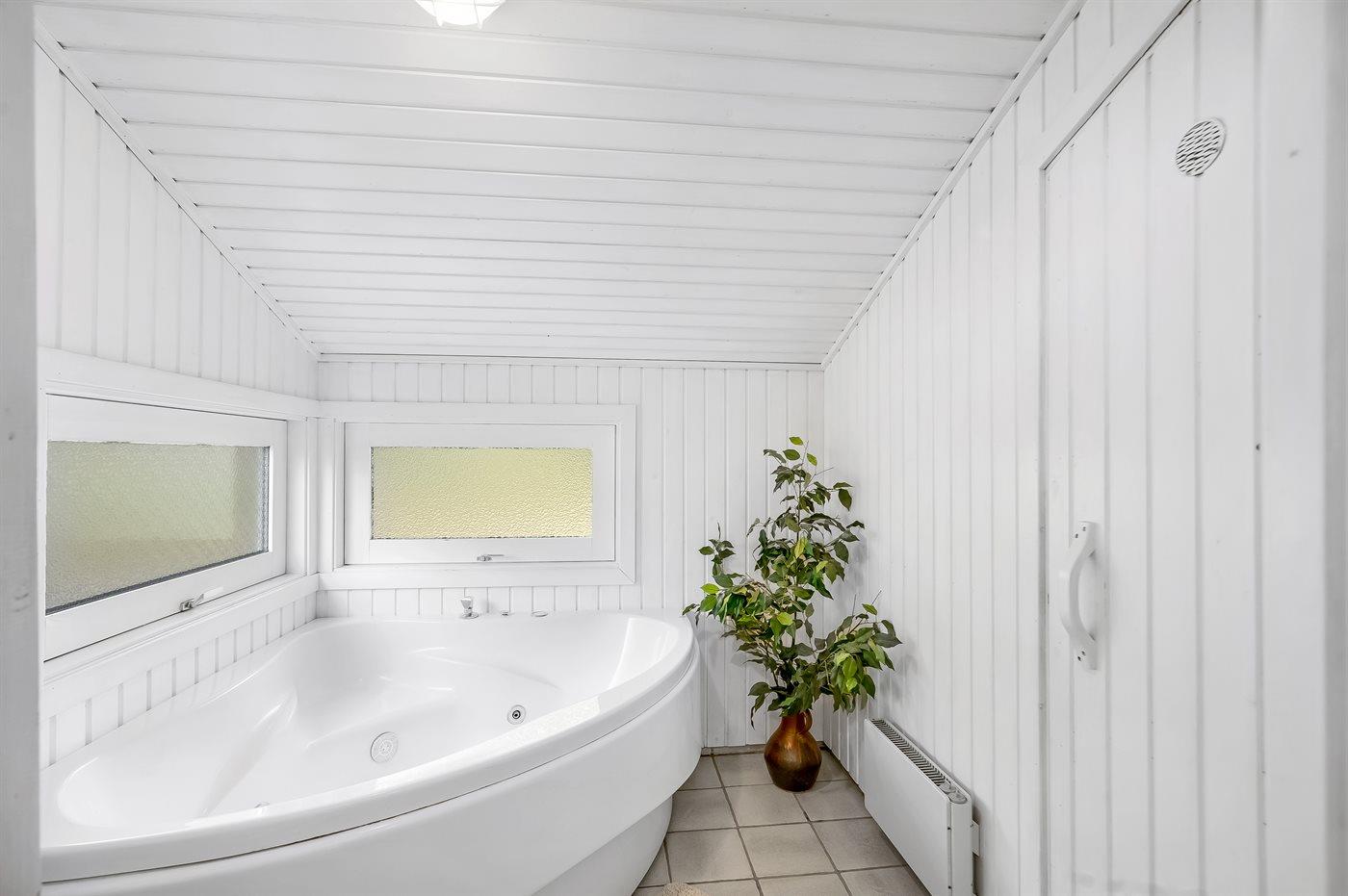 Der er 1 badeværelse med bruseniche og 1 toilet.. Der er gulvvarme på 1 badeværelse. I saunaen er der mulighed for afslapning.
