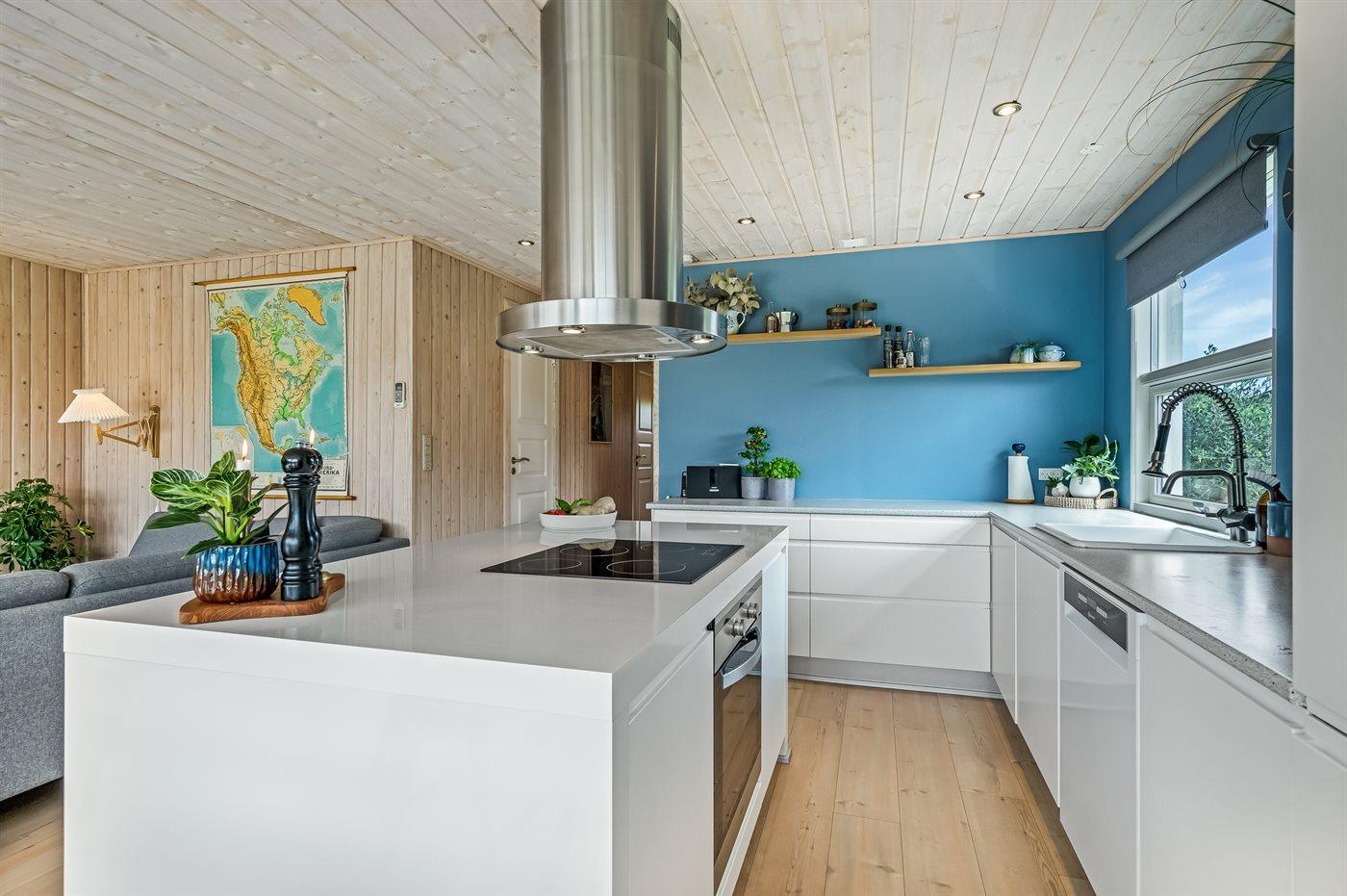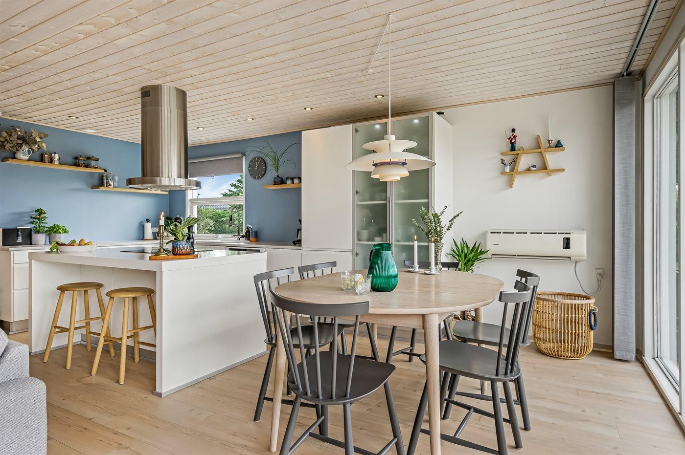 Køkkenet er udstyret med 1 køleskab. Der er 4 keramiske kogeplader, varmluftovn samt opvaskemaskine.