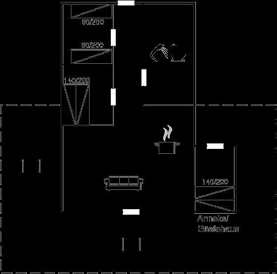 Der er i alt 3 soveværelser. Sovepladserne fordeler sig på: 4 sovepladser i dobbeltsenge. 2 sovepladser i enkeltsenge. 2 af disse sovepladser befinder sig i et anneks.