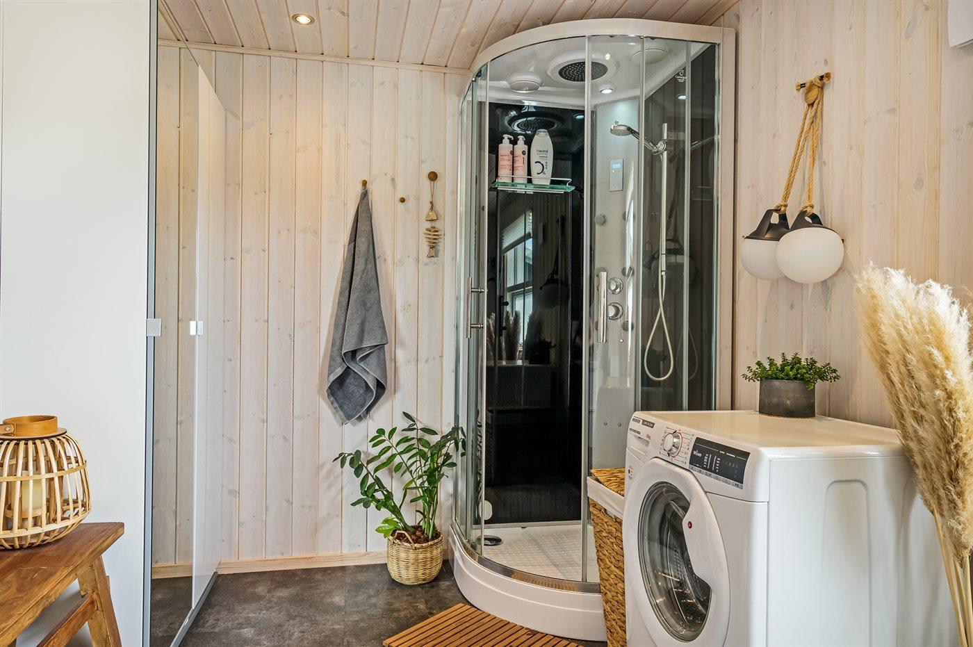 Der er 1 badeværelse med bruseniche og 1 toilet. Dampkabine.