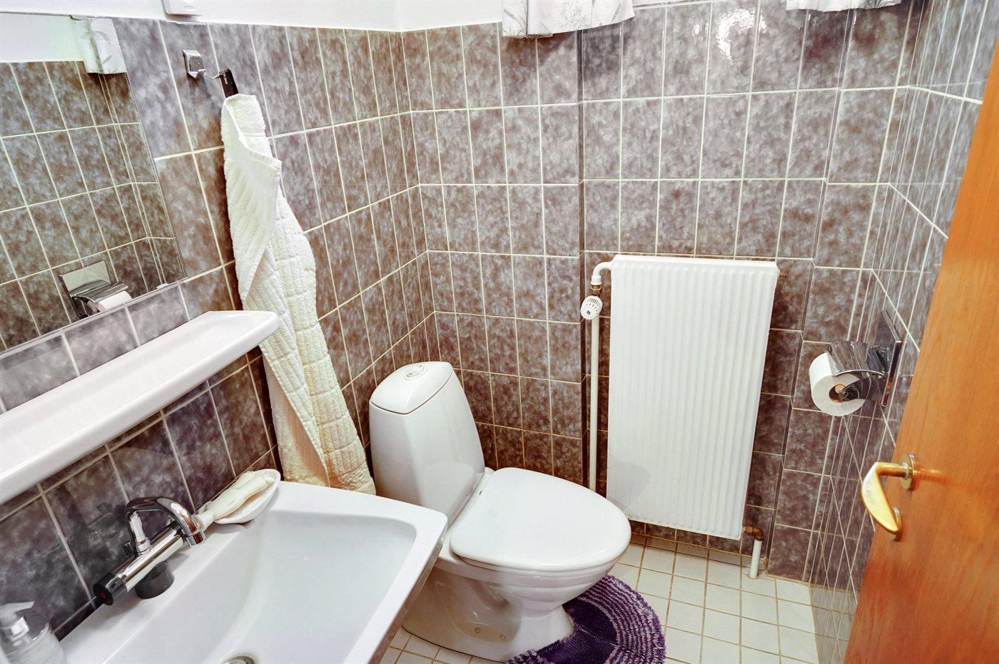 Der er 1 badeværelse med bruseniche og 2 toiletter, heraf 1 gæstetoilet. Der er gulvvarme på 1 badeværelse.