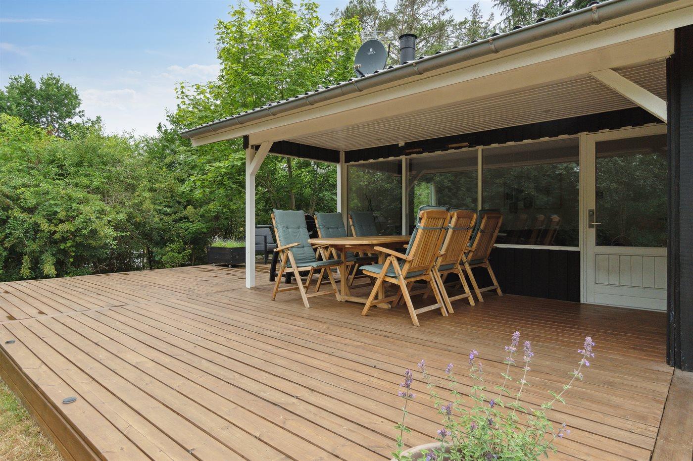 Ferieboligen er beliggende på en 826 m² stor naturgrund. Der er 250 m til havet. Der er 9900 m til fjorden. Nærmeste forretning er beliggende i en afstand af 1100 m. Der er en golfbane i en afstand af 14300 m. Til ferieboligen hører åbent terrasseareal. Desuden er der overdækket terrasse. Rutchebane. Der ligger en legeplads i en afstand af 820 m. Bålsted. Shelter. Udendørs bruser. Grill til rådighed. Parkering ved ferieboligen.