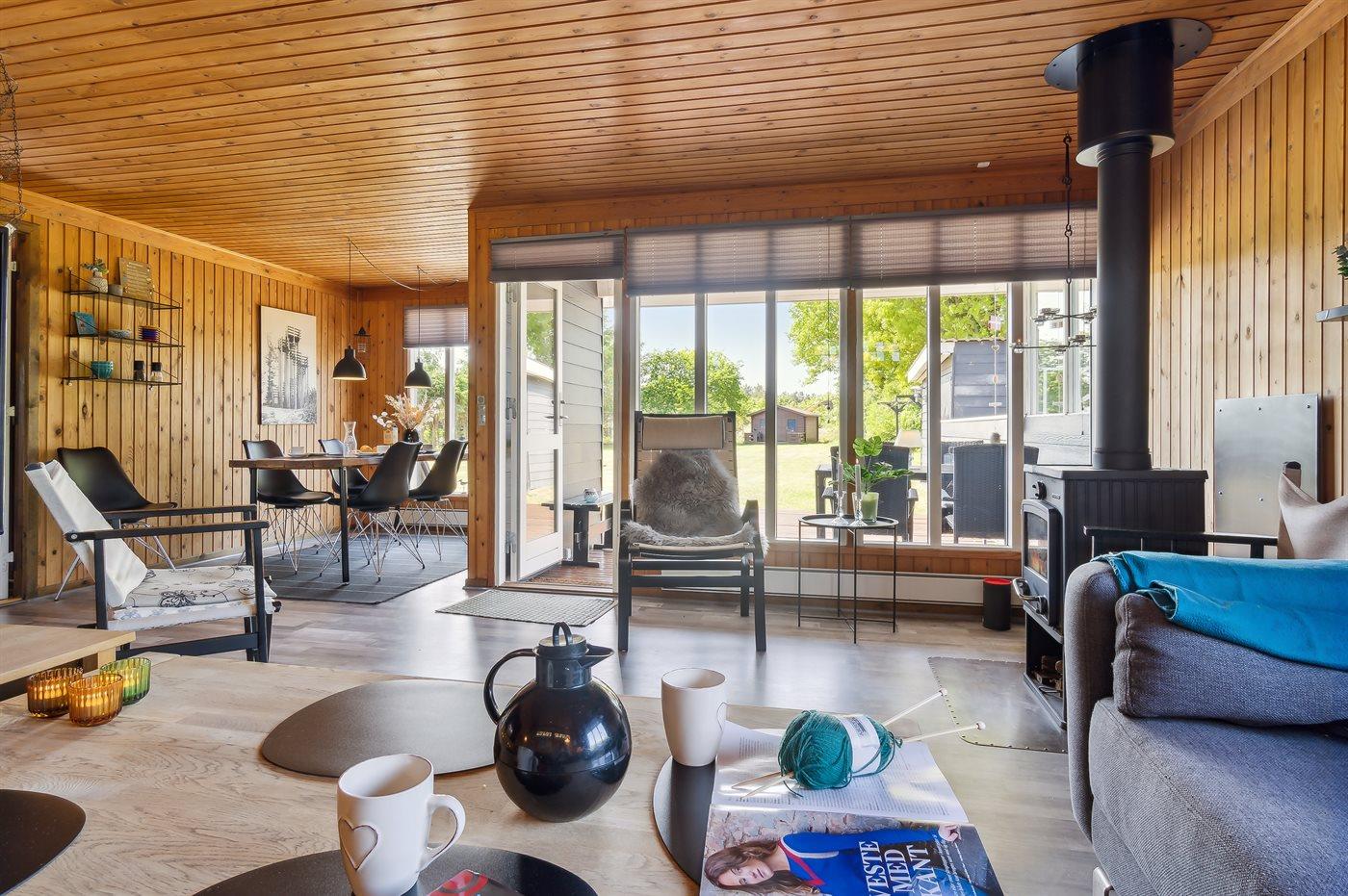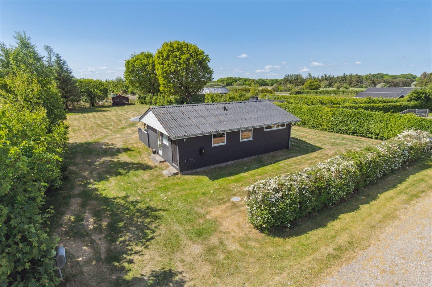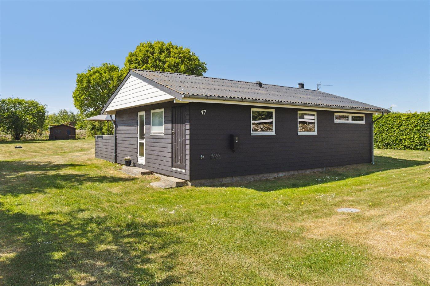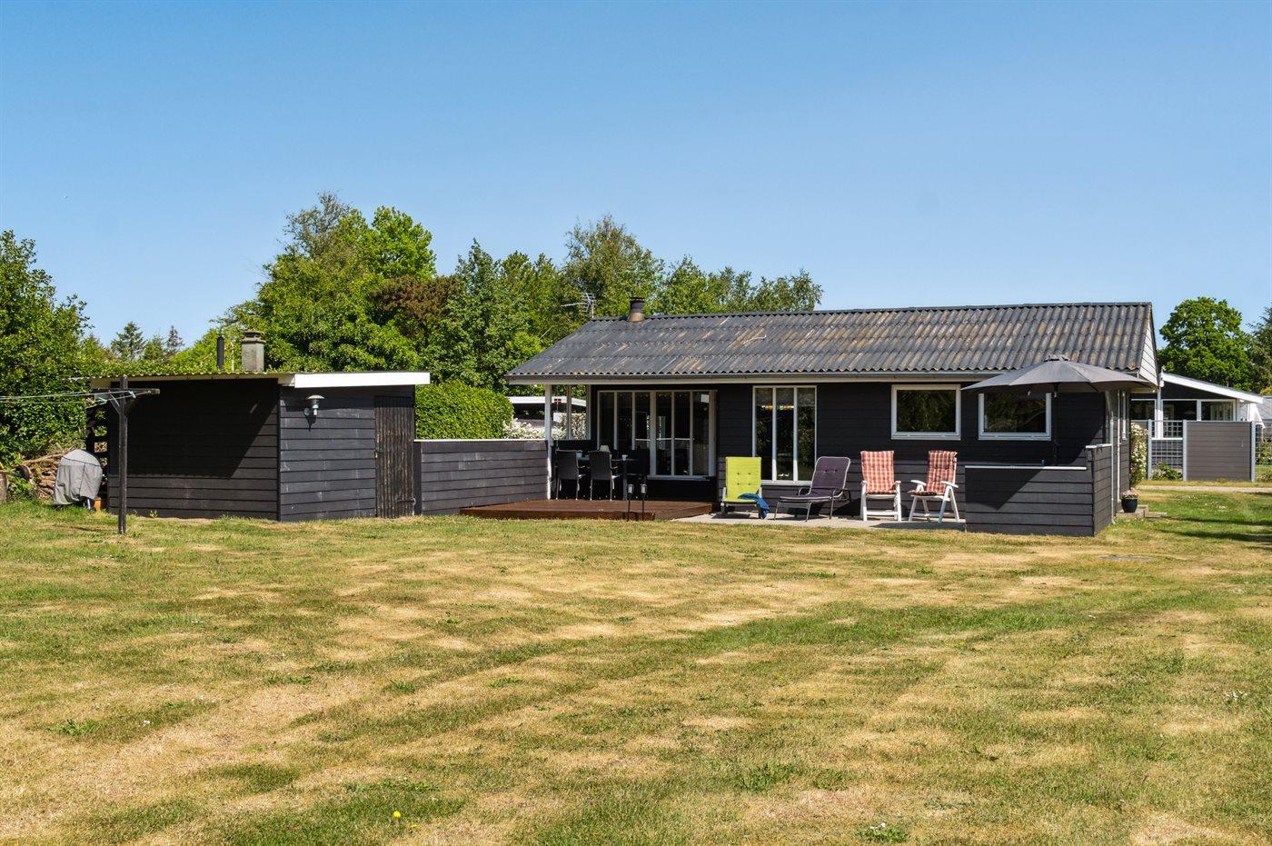 Skønt og velholdt sommerhus beliggende i et roligt og naturskønt ferieområde. Sommerhuset ligger blot ca. 300 meter fra vandet og her finder man en god sandstrand, hvor hele familien kan hygge sig. Sommerhuset er beliggende ganske ugeneret og på den store grund er der god plads til boldspil og leg. Hele haven kan nydes fra det dejlige terrasseareal, som også delvist er overdækket, så her er god mulighed for at forlænge udelivet hen over sommeren.
