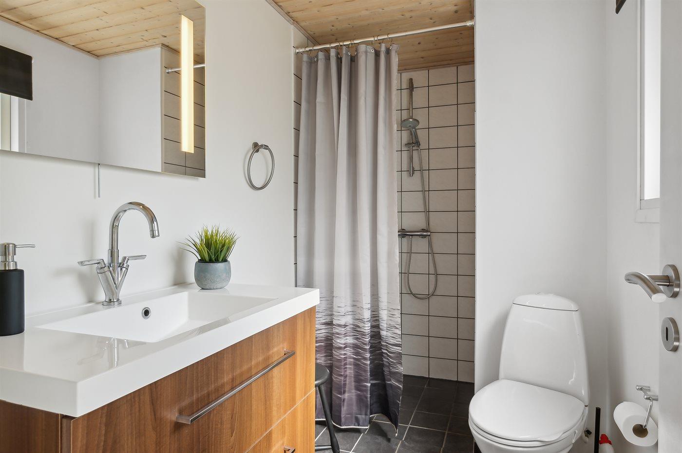 Der er 1 badeværelse med bruseniche og 1 toilet.. Der er gulvvarme på 1 badeværelse.