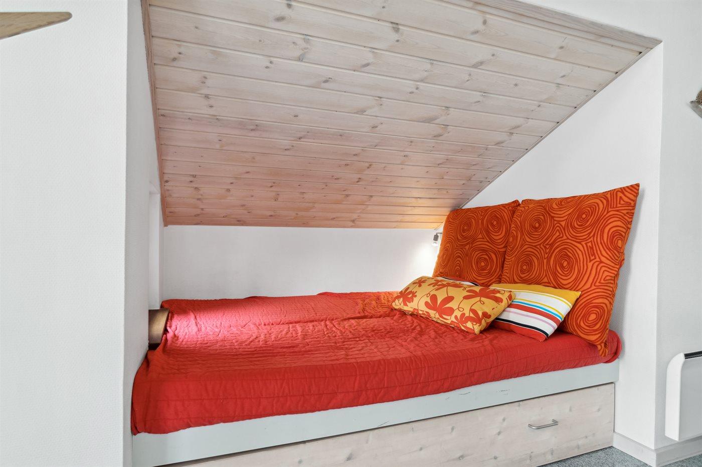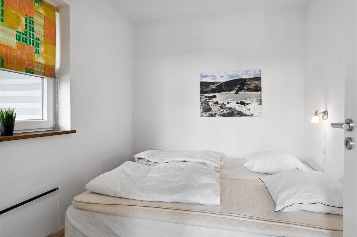 Der er i alt 2 soveværelser. Sovepladserne fordeler sig på: 4 sovepladser i dobbeltsenge. 2 sovepladser i køjeseng. 2 sovepladser i alkove. 2 af disse sovepladser befinder sig i stuen. Derudover er der 1 stk. barneseng.