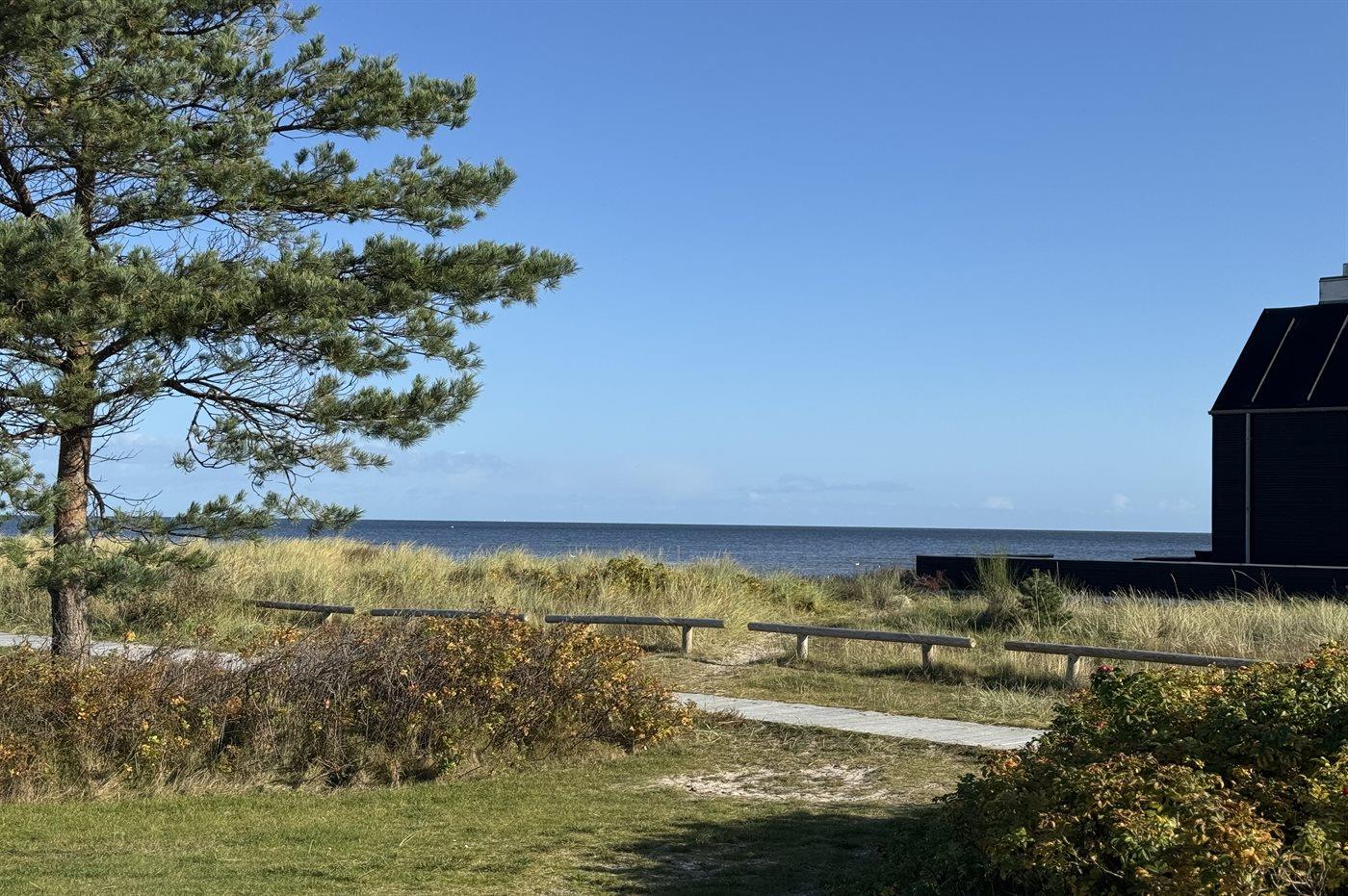 Ferieboligen er beliggende på en 1200 m² stor havegrund. Der er 1000 m til havet. Der er 10100 m til fjorden. Nærmeste forretning er beliggende i en afstand af 1000 m. Der er en golfbane i en afstand af 17400 m. Til ferieboligen hører åbent terrasseareal. Desuden er der overdækket terrasse. Der er redskabsrum. Udendørs sauna. Udendørs, infrarød sauna. Udendørs bruser. Grill til rådighed. Der er installeret stik til opladning af elbil. Type 2 stik. Med 11 kW ladeeffekt. Parkering ved ferieboligen.