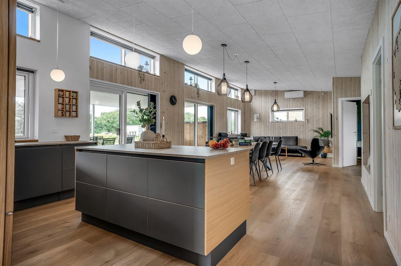 Køkkenet er udstyret med 2 køleskabe. Der er 4 induktionskogeplader, varmluftovn, mikrobølgeovn samt opvaskemaskine.