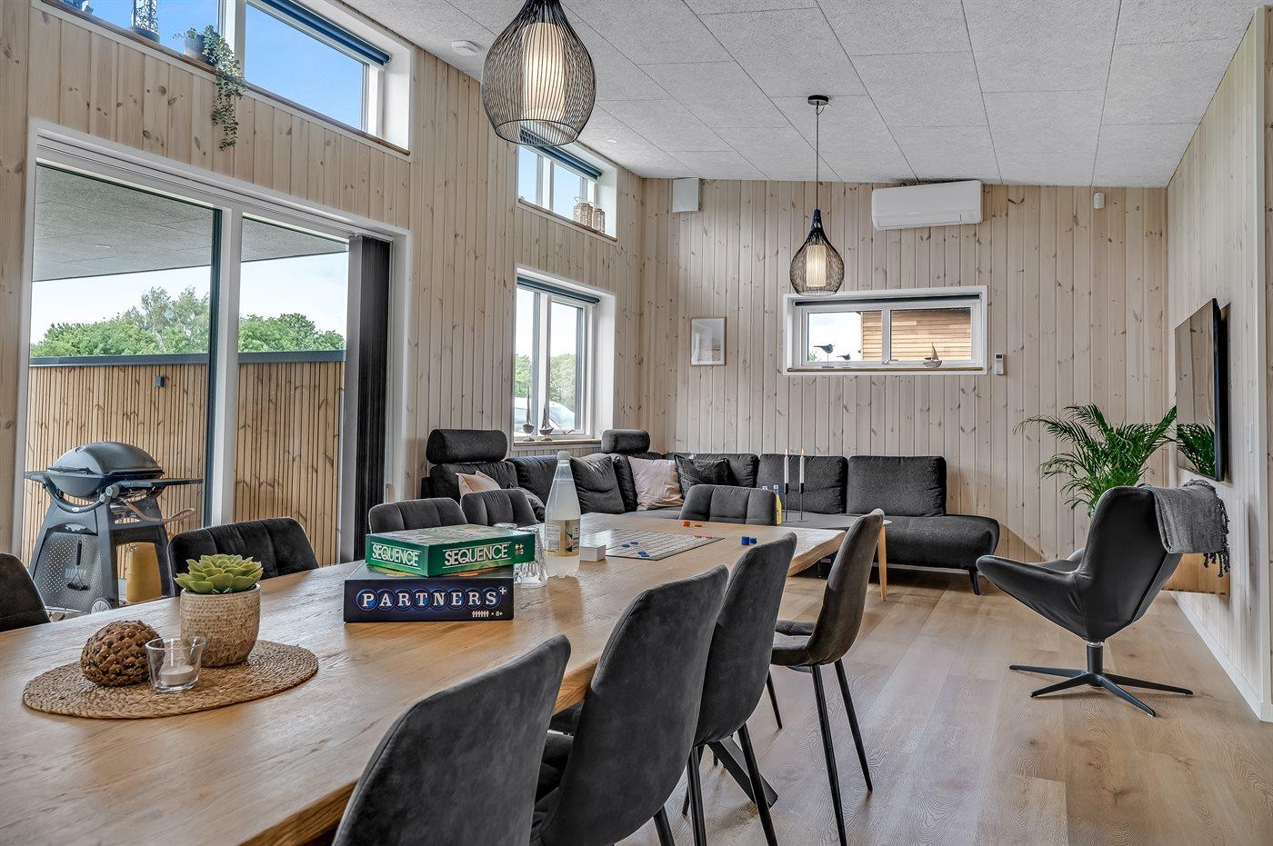 Sommerhuset egner sig til 10 personer. Ferieboligen er på 158 m² og er bygget i 2024. Det er tilladt at medbringe 1 husdyr. Ferieboligen er udstyret med energibesparende luft til vand varmepumpe. Hele ferieboligen har gulvvarme. Ferieboligen har vaskemaskine. Tørretumbler. Frysekapacitet på 60 liter. Til de små er der 1 stk. barnestol.