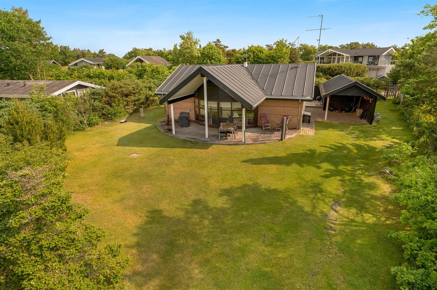 Ferieboligen er beliggende på en 914 m² stor havegrund. Der er 170 m til havet. Der er 9300 m til fjorden. Nærmeste forretning er beliggende i en afstand af 9300 m. Der er en golfbane i en afstand af 16800 m. Til ferieboligen hører åbent terrasseareal. Desuden er der overdækket terrasse. Grill til rådighed. Parkering ved ferieboligen.