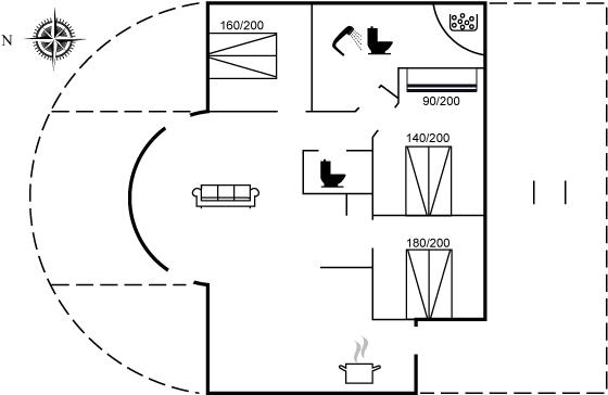 Der er i alt 3 soveværelser. Sovepladserne fordeler sig på: 6 sovepladser i dobbeltsenge. 2 sovepladser i køjeseng.