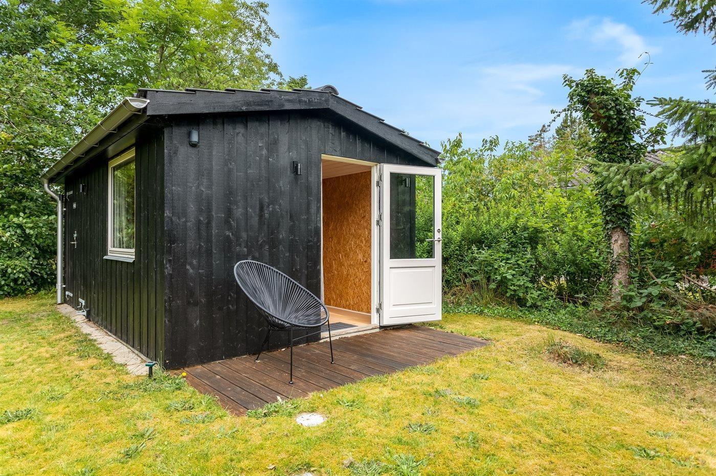 Ferieboligen er beliggende på en 801 m² stor havegrund. Der er 350 m til havet. Der er 8700 m til fjorden. Der er en badebro i nærheden. Nærmeste forretning er beliggende i en afstand af 3000 m. Der er en golfbane i en afstand af 14600 m. Til ferieboligen hører 40 m² terrasseareal. Desuden er der 20 m² overdækket terrasse. Grill til rådighed. Parkering ved ferieboligen.
