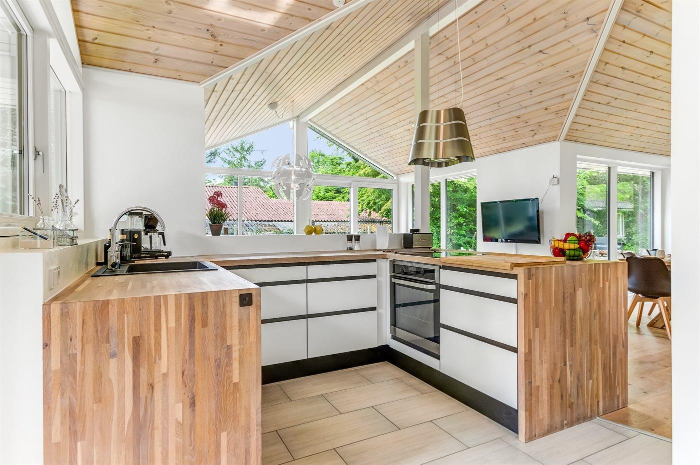 Køkkenet er udstyret med 1 køleskab. Der er 4 keramiske kogeplader, varmluftovn, mikrobølgeovn samt opvaskemaskine.
