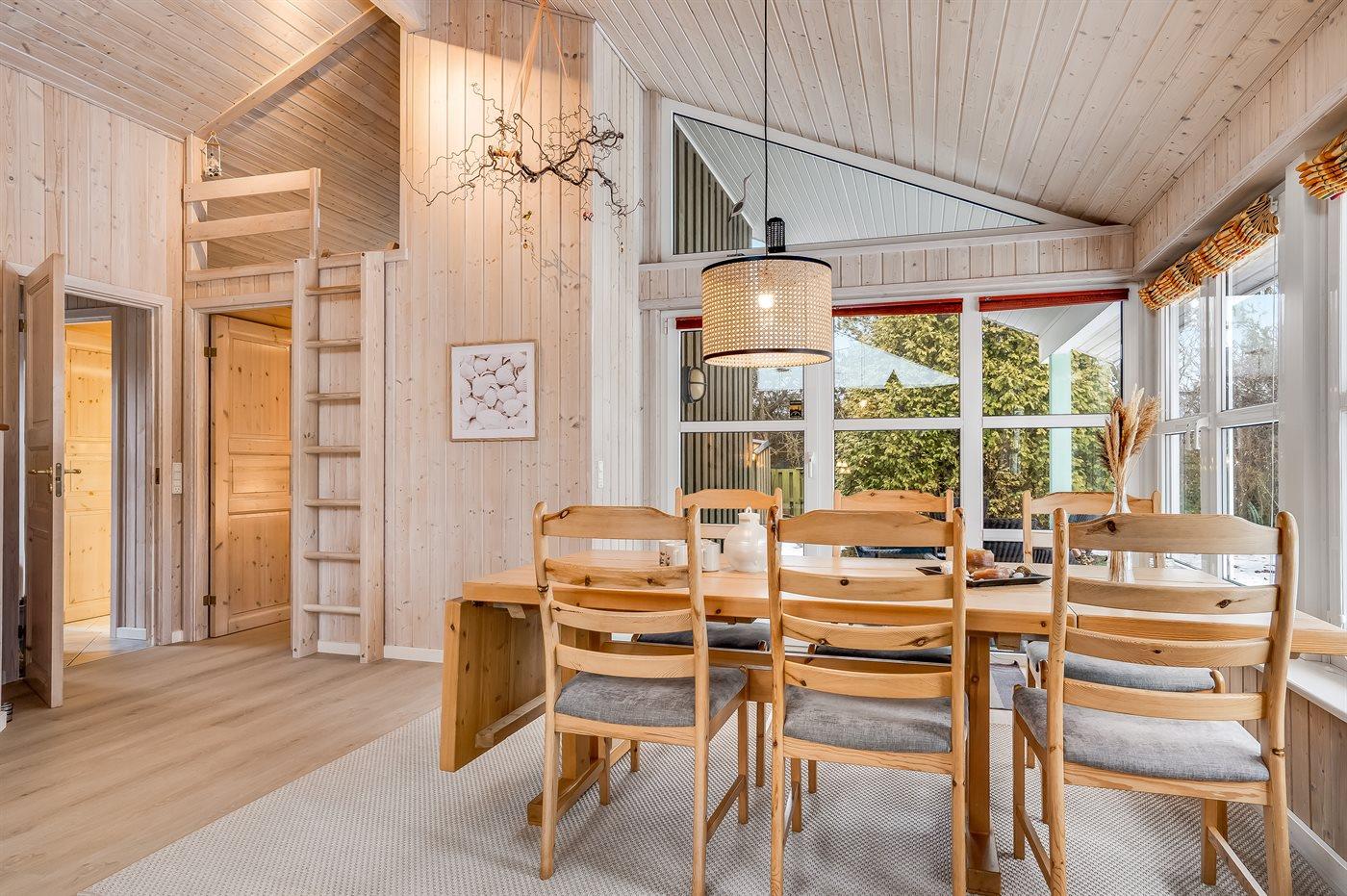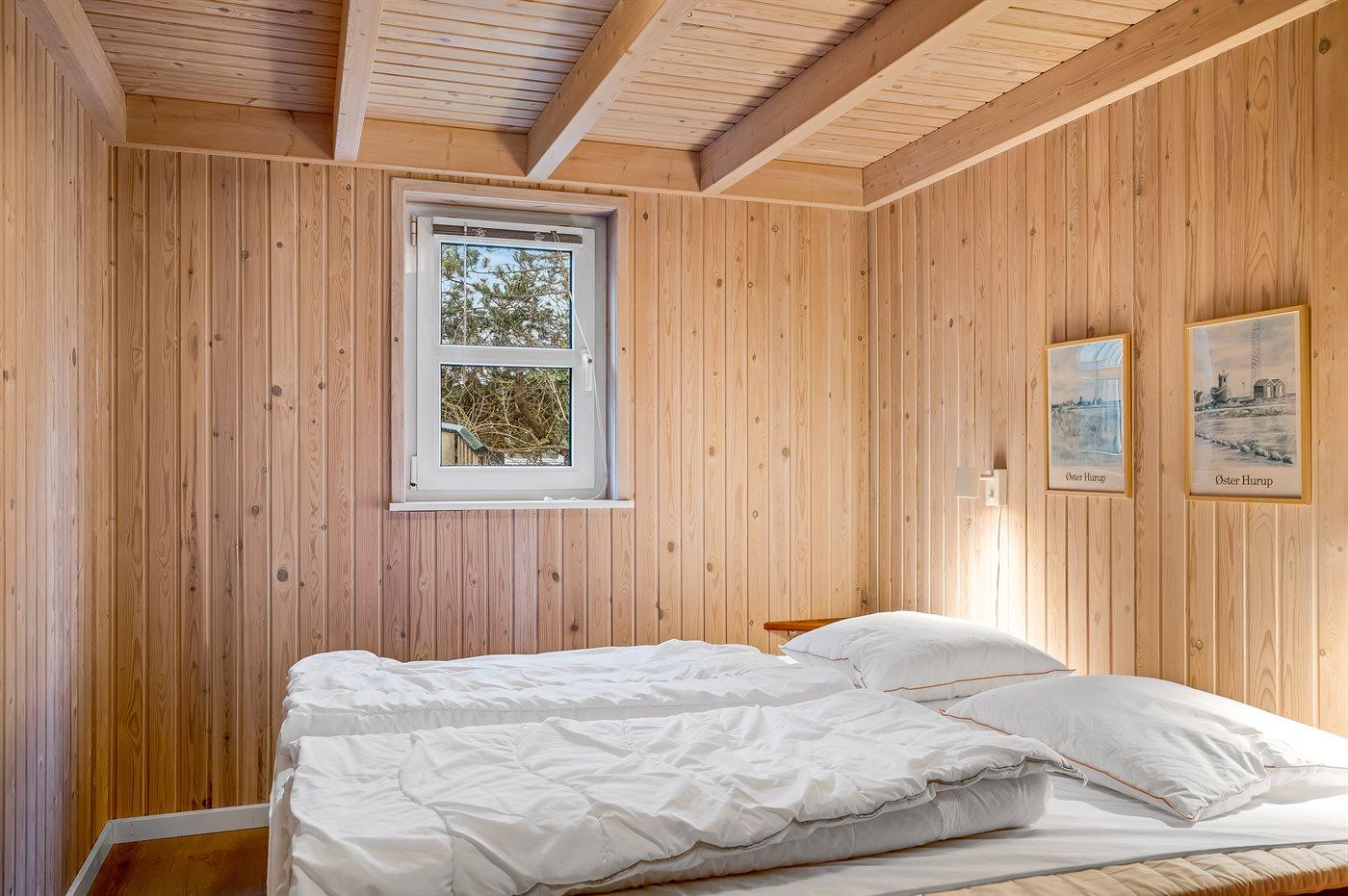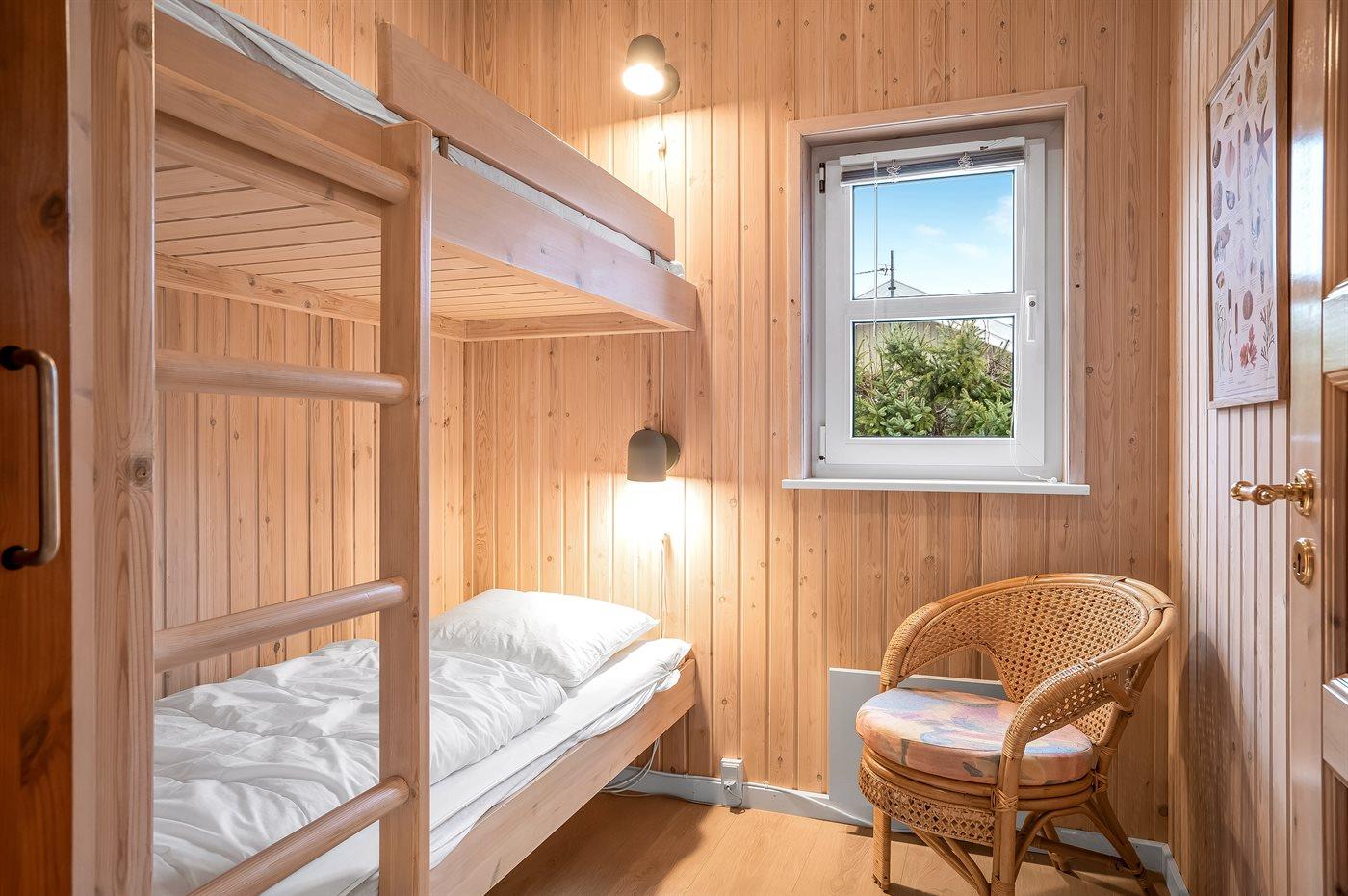 Der er i alt 3 soveværelser. Sovepladserne fordeler sig på: 2 sovepladser i dobbeltseng. 2 sovepladser i enkeltsenge. 2 sovepladser i køjeseng. Derudover er der 1 stk. barneseng.