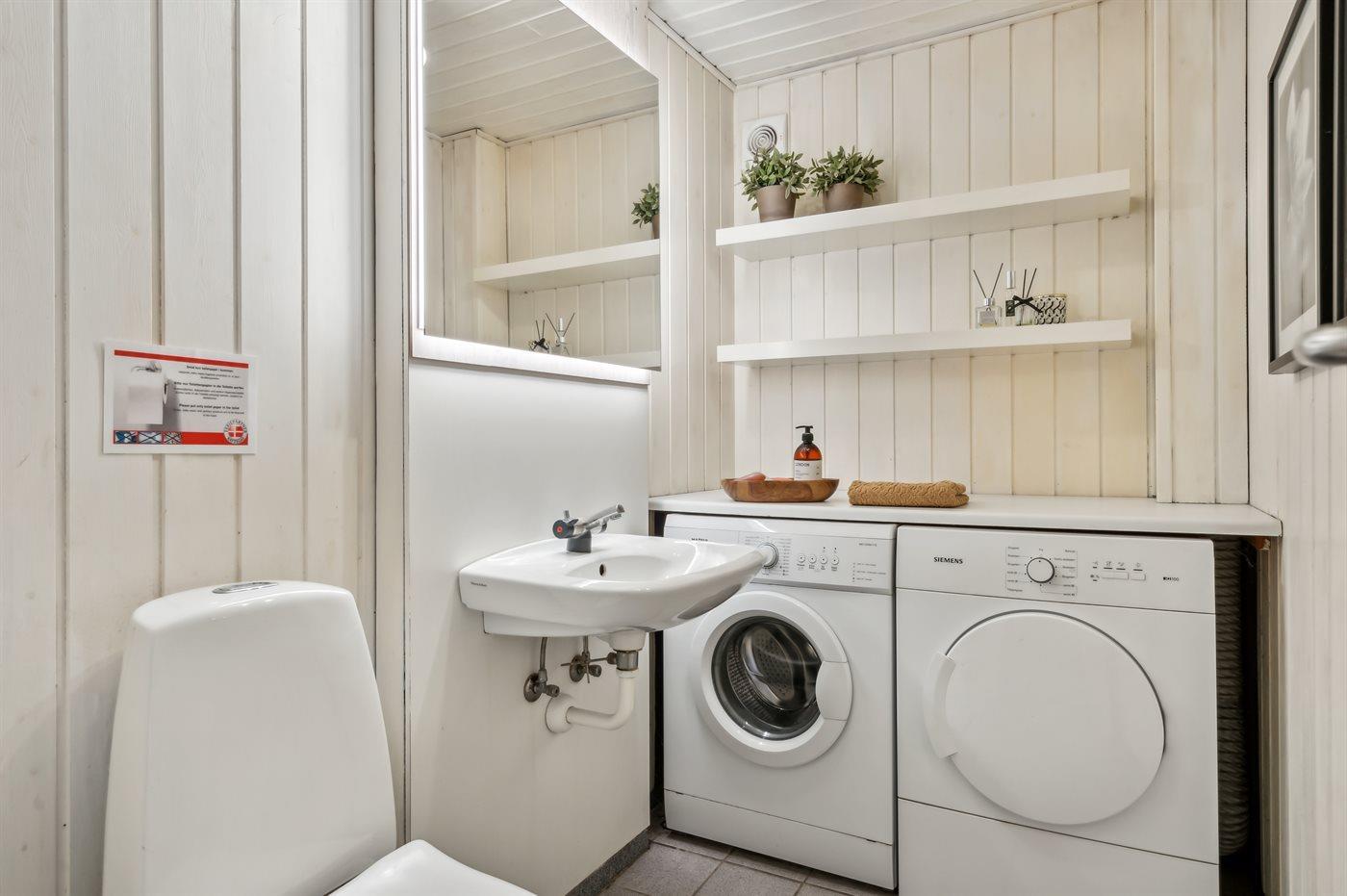 Der er 1 badeværelse med bruseniche og 2 toiletter, heraf 1 gæstetoilet. Der er gulvvarme på 1 badeværelse. Der er gulvvarme på gæstetoilettet.