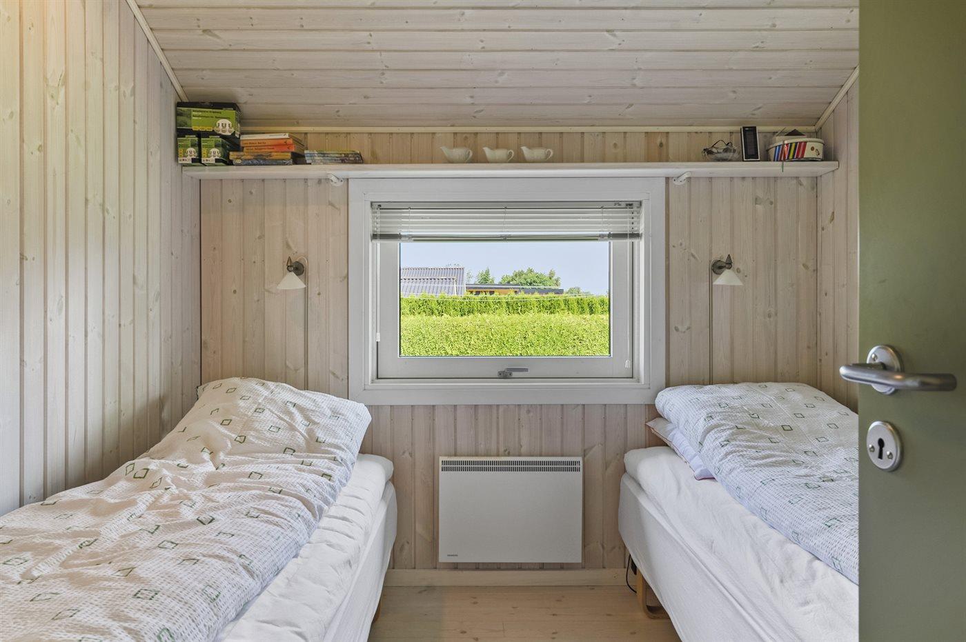 Der er i alt 3 soveværelser. Sovepladserne fordeler sig på: 4 sovepladser i dobbeltsenge. 2 sovepladser i enkeltsenge. 2 sovepladser i alkove. 2 af disse sovepladser befinder sig i stuen.