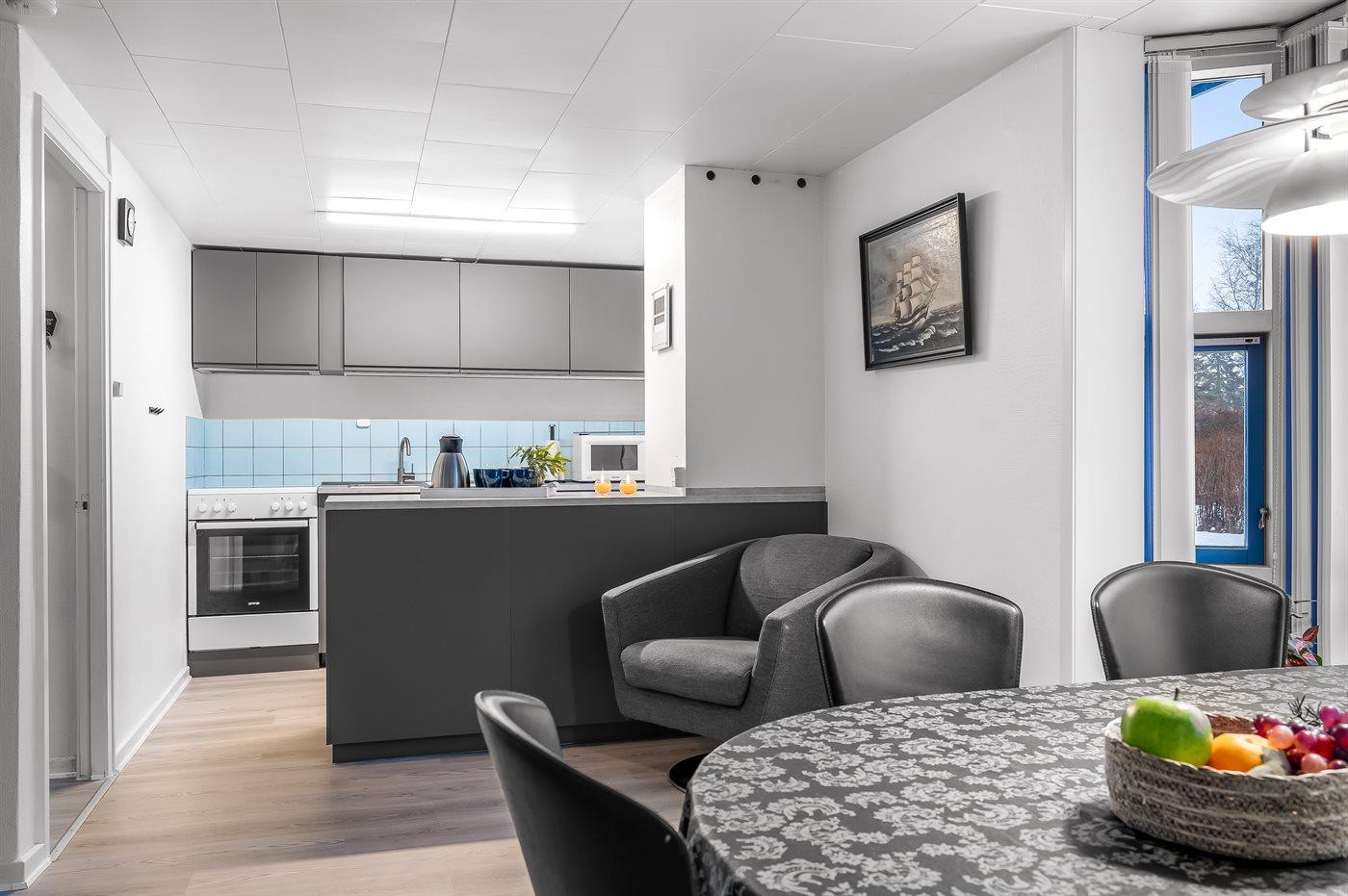 Køkkenet er udstyret med 1 køleskab. Der er 4 keramiske kogeplader, varmluftovn, mikrobølgeovn.