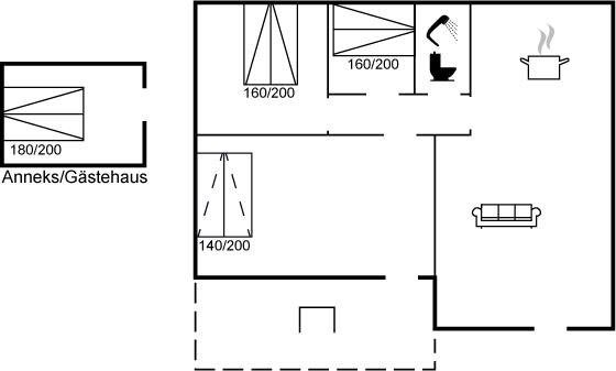 Der er i alt 4 soveværelser. Sovepladserne fordeler sig på: 6 sovepladser i dobbeltsenge. 2 sovepladser i sovesofa (dobbelt). 2 af disse sovepladser befinder sig i et anneks. Derudover er der 1 stk. barneseng.