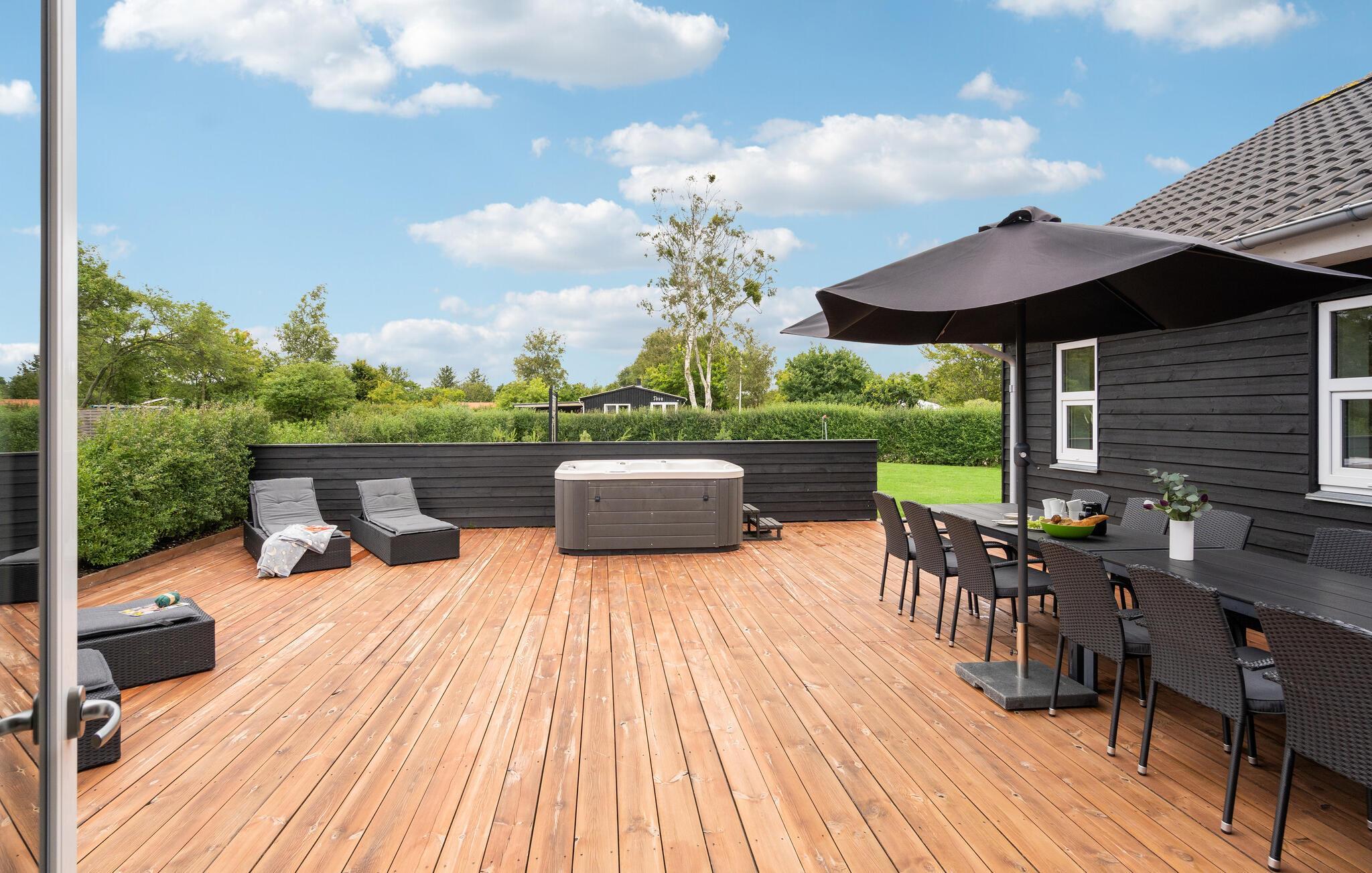 Dette smukke sommerhus tilbyder masser af plads til flere familier, der ønsker at tilbringe en afslappende ferie sammen i Østjylland. Slap af i boblebadet og kom helt ned i gear efter en lang gåtur. I kan glæde jer til at bruge masser af tid i den friske luft på den store terrasse, der er tilgængelig fra både stuen og to af værelserne.