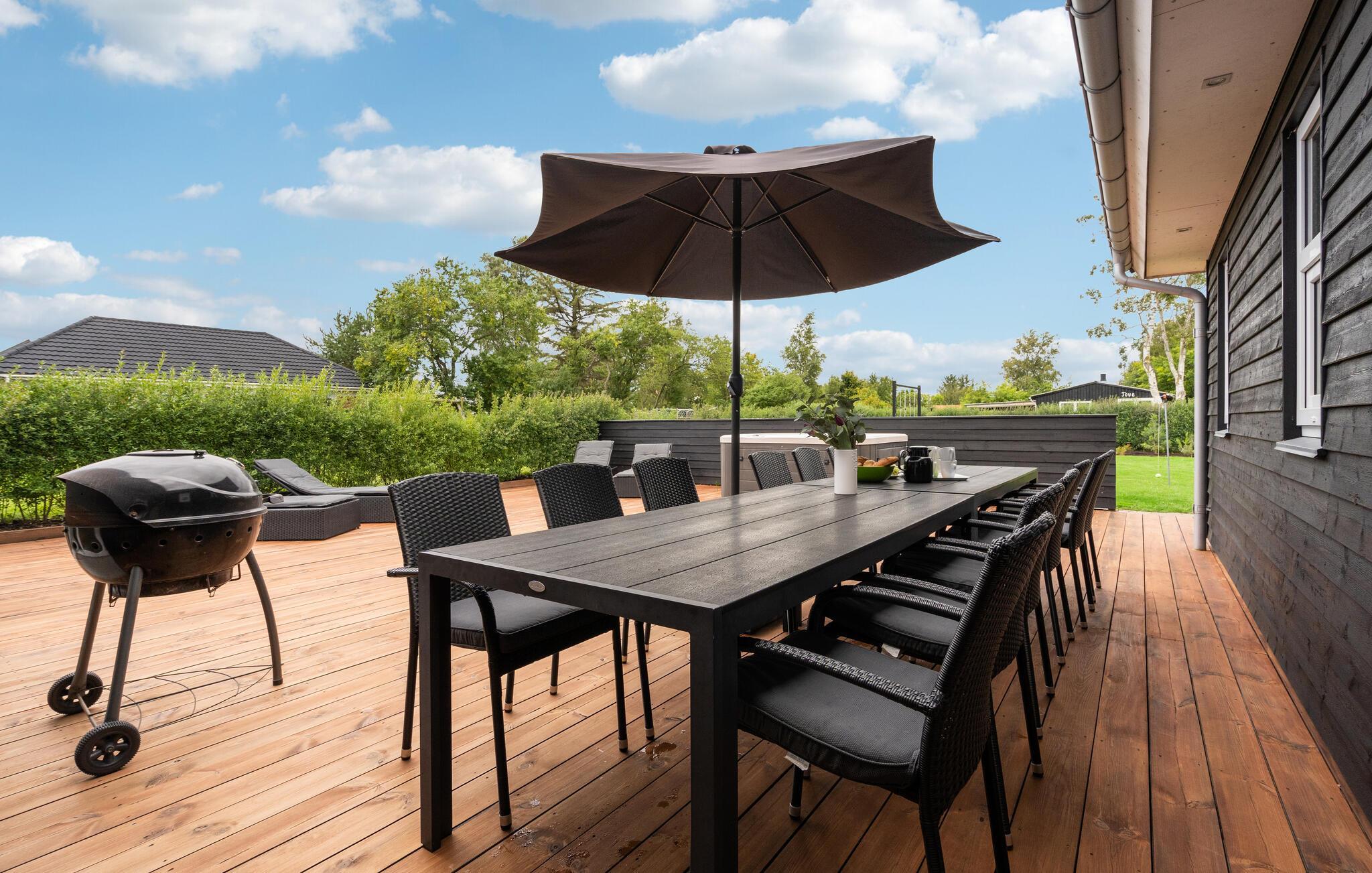 Stort og velholdt sommerhus ved Øster Hurup Strand med wellness, stor terrasse og plads til flere familier.