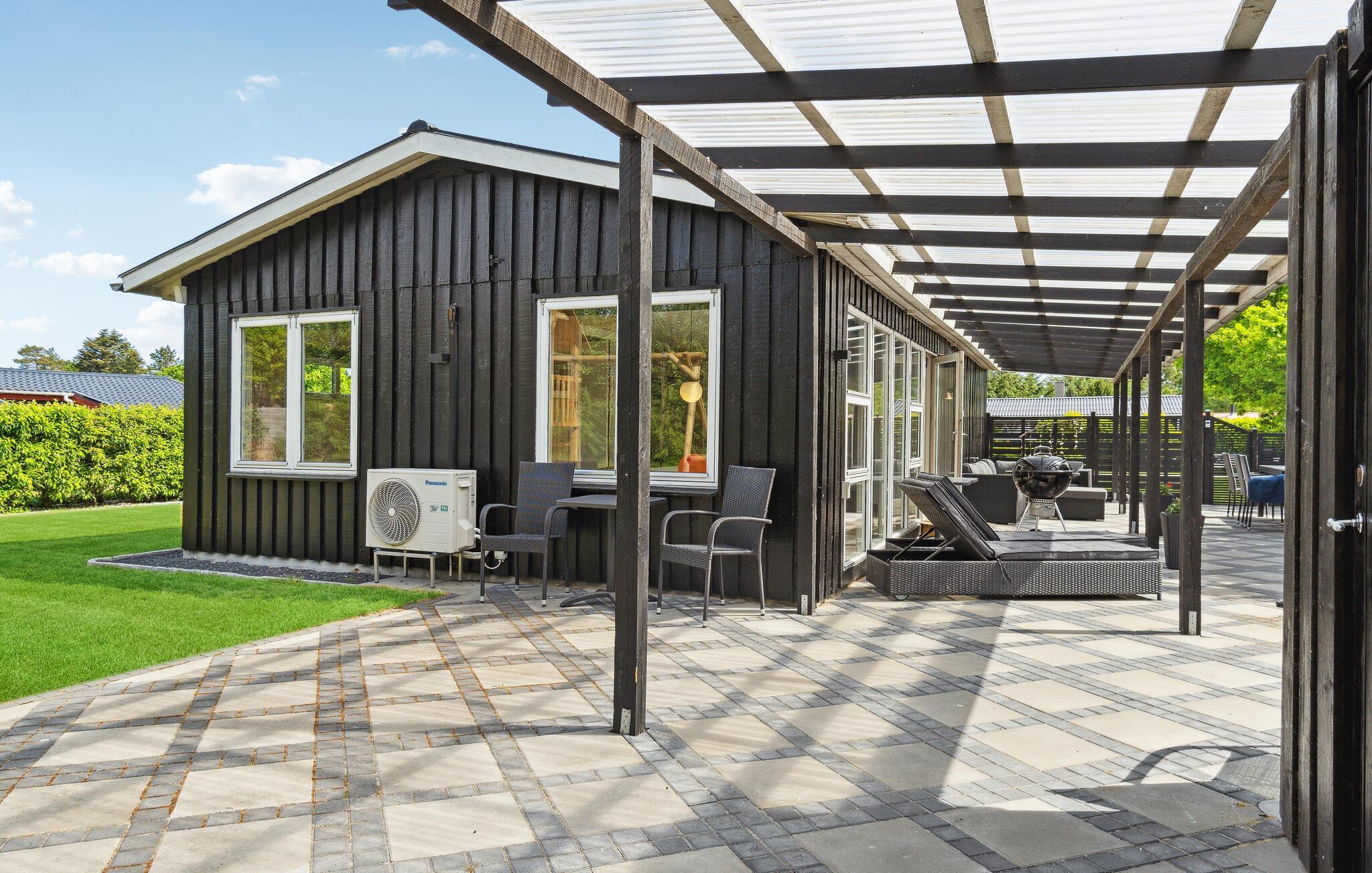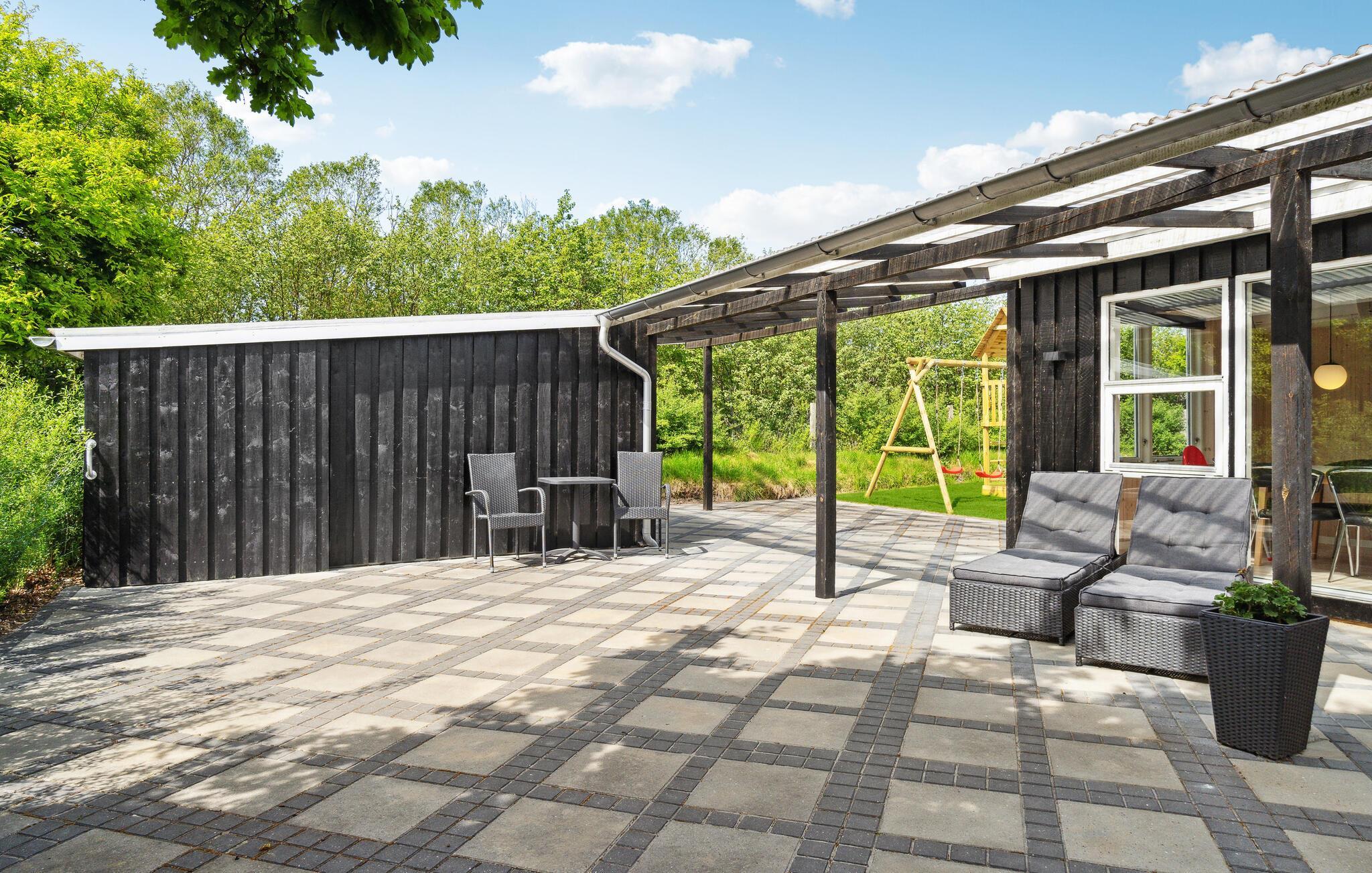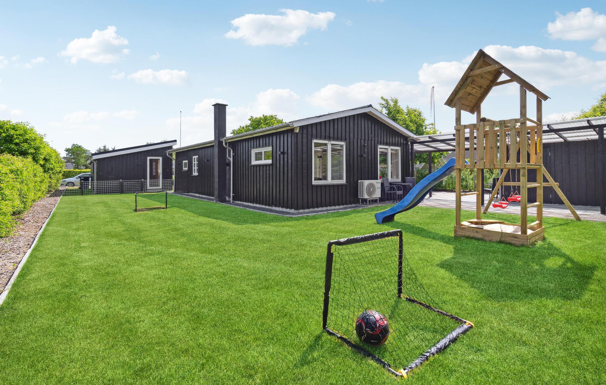 Moderne feriehus tæt på stranden i Øster Hurup med stor have og terrasse, perfekt til to familier.