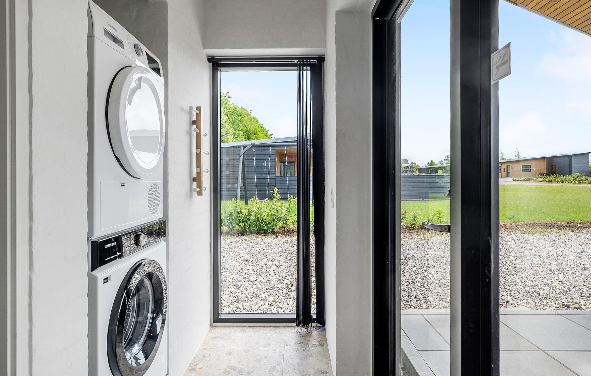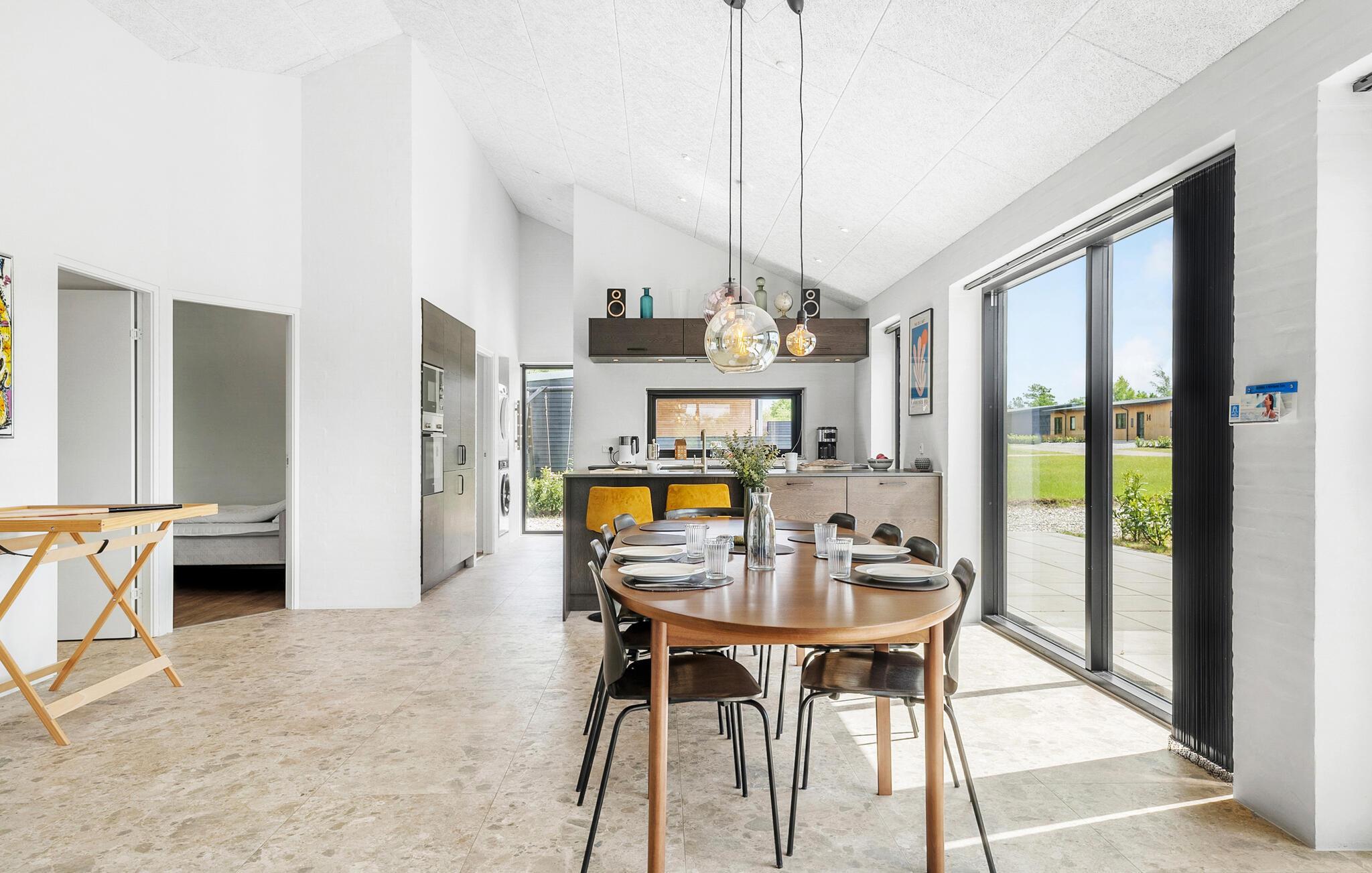 Velkommen til dette gennemførte og energivenlige feriehus! Stedet er den perfekte, rolige base til en varieret eventyrferie for hele den store familie. Brug den lyse og åbne stue som et centralt mødested for familien, hvor I kan dyste i brætspil ved spisebordet, tilbringe hyggelige filmaftener på sofaen eller tilberede jeres yndlingsretter i det åbne køkken. Fra stuen er der udgang til terrassen. Jeres børn vil elske at springe, så højt de kan, på trampolinen og at forsøge at skyerne, når de gynger på livet løs. Tag en afslappende dukkert i det store spabad. Om aftenen kan I spise på den overdækkede terrasse og lægge planer for den kommende ferie.