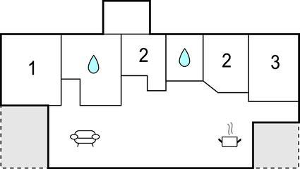 Badeværelse (nr. 2) - WC. Varmt og koldt vand. Bruser