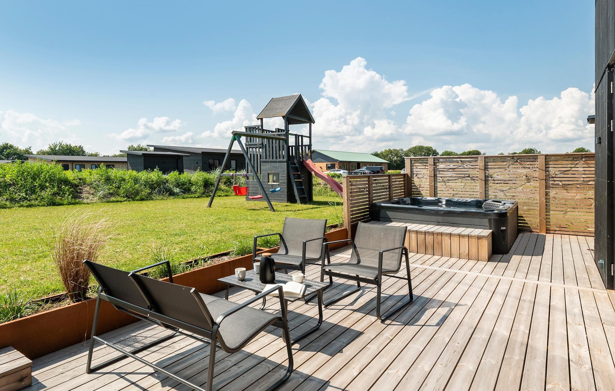 På terrassen kan I nyde den friske luft, mens spabadet lover ren afslapning for krop og sind. Børn kan glæde sig til gyngen, sandkassen og legehuset i haven.