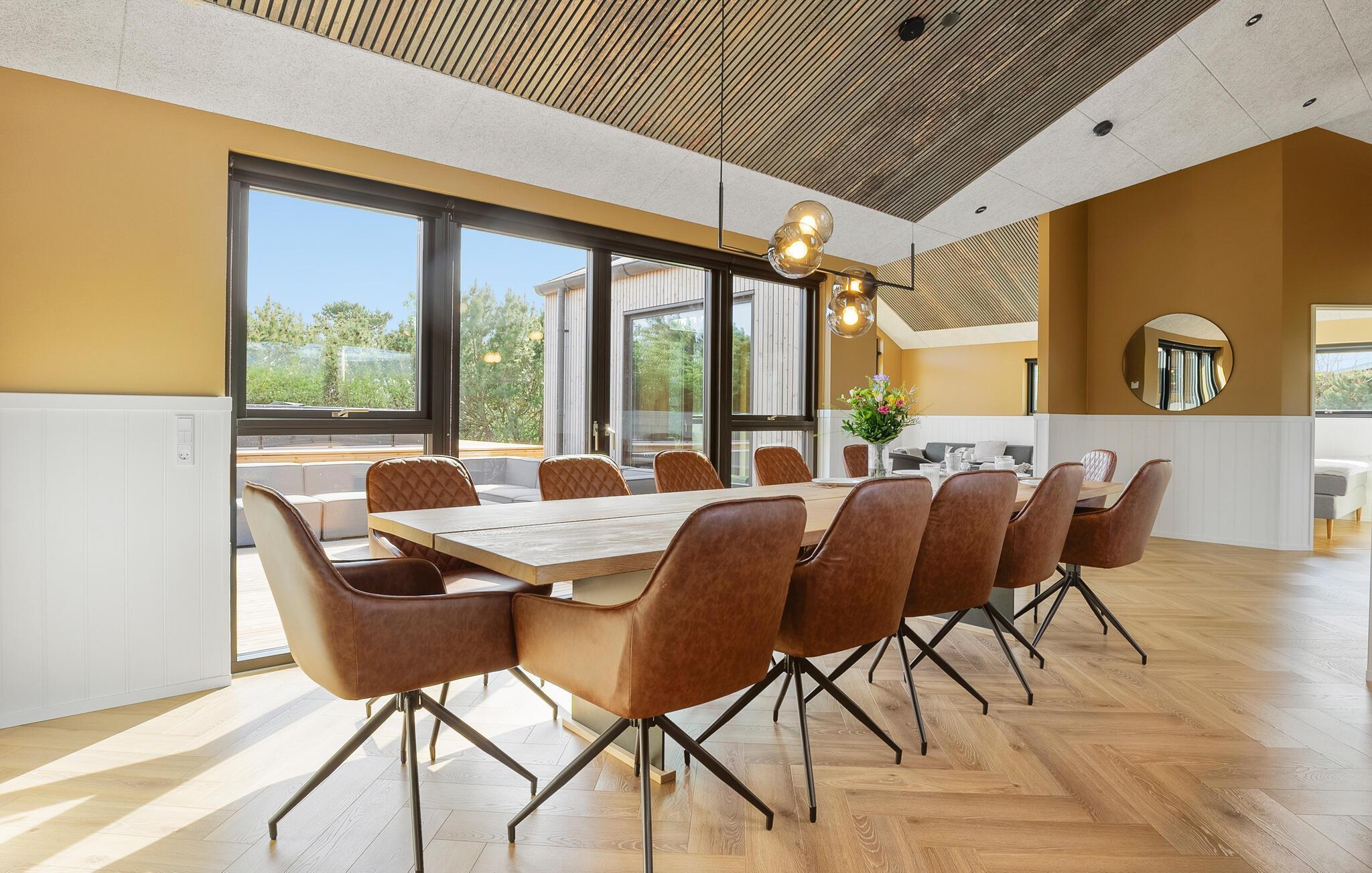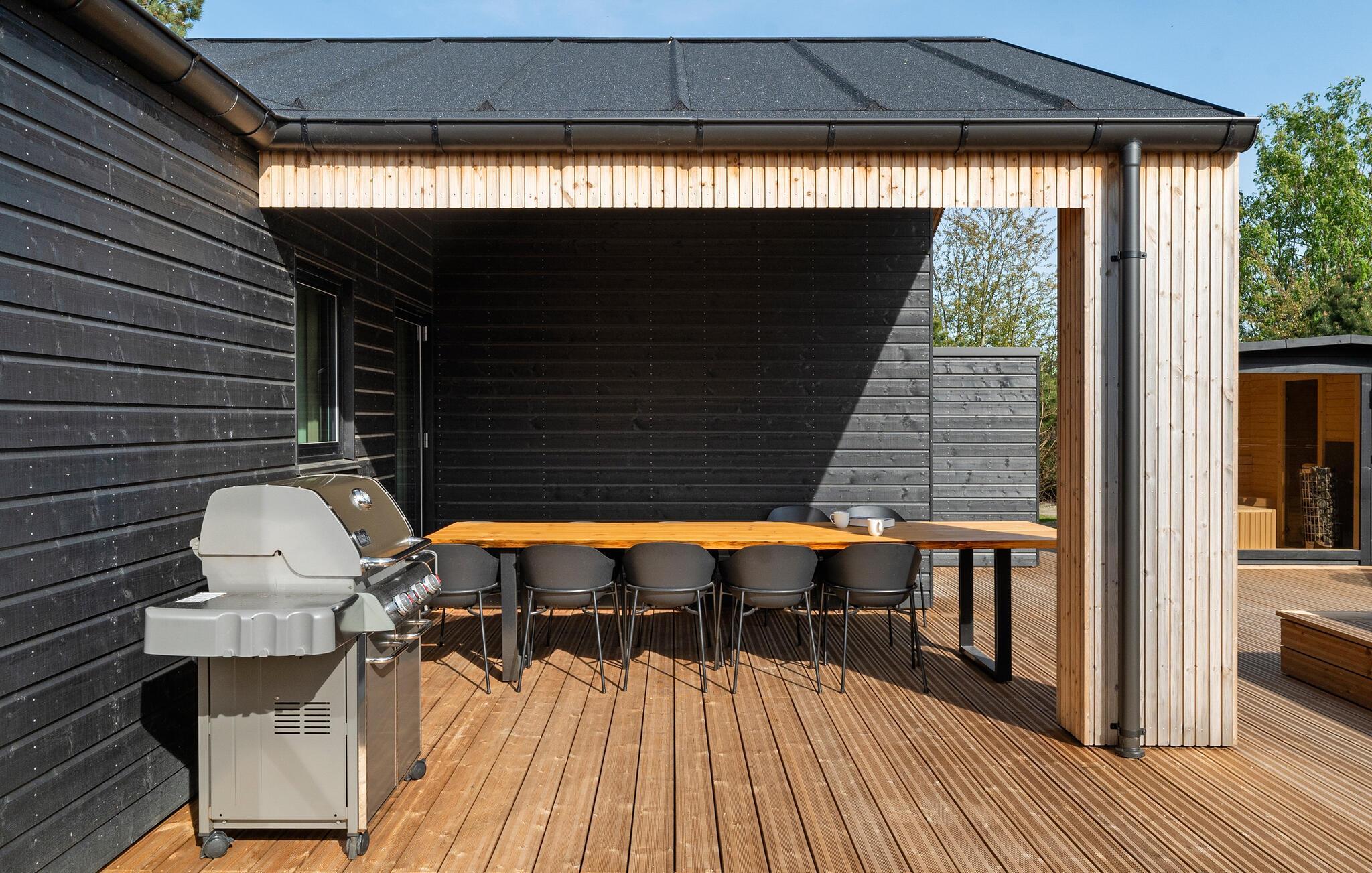 Slap af i spabadet og skift saunaen med en forfriskende dukkert i det kolde vand, mens børnene leger med legemulighederne i den overdækkede have. Nyd en drink i den elegante udendørs lounge og hold jeres tid sammen med stemningsfulde grillmad på terrassen.