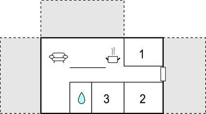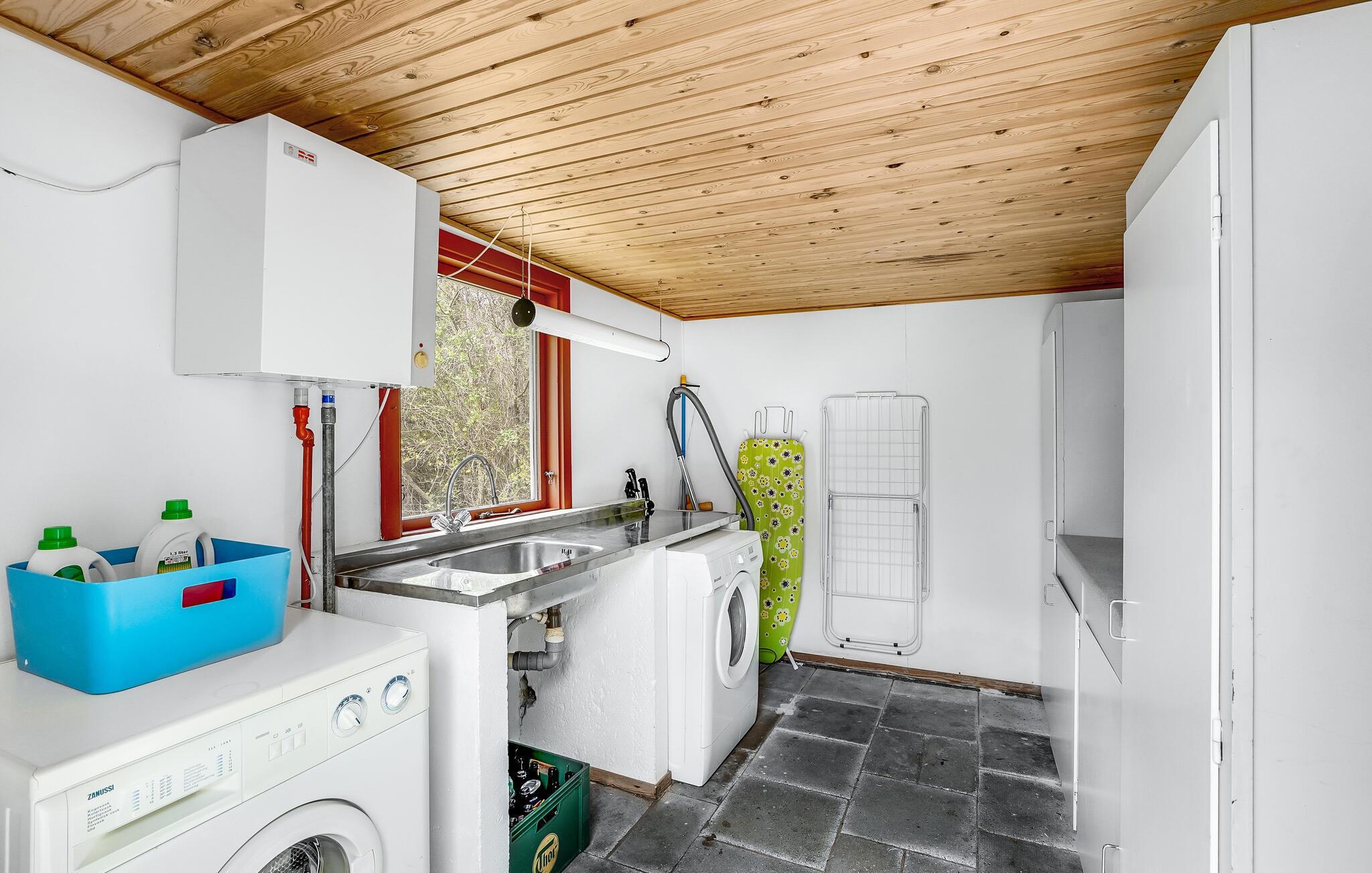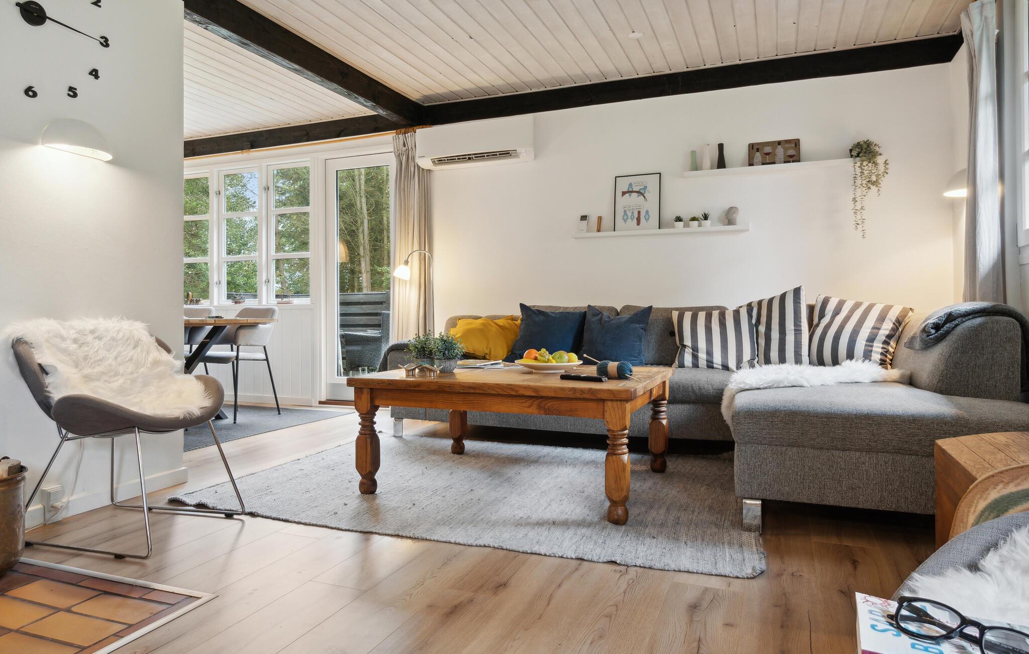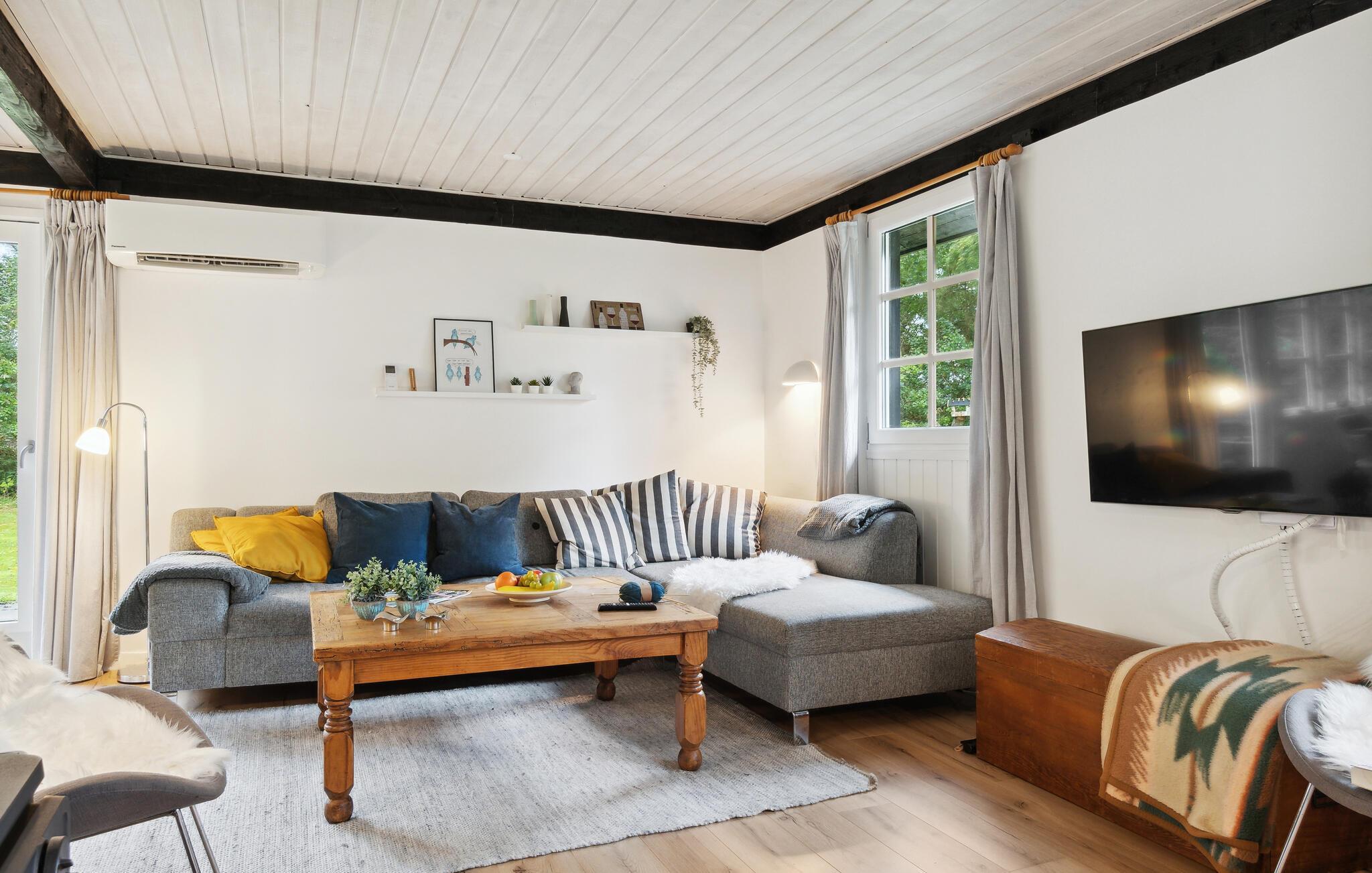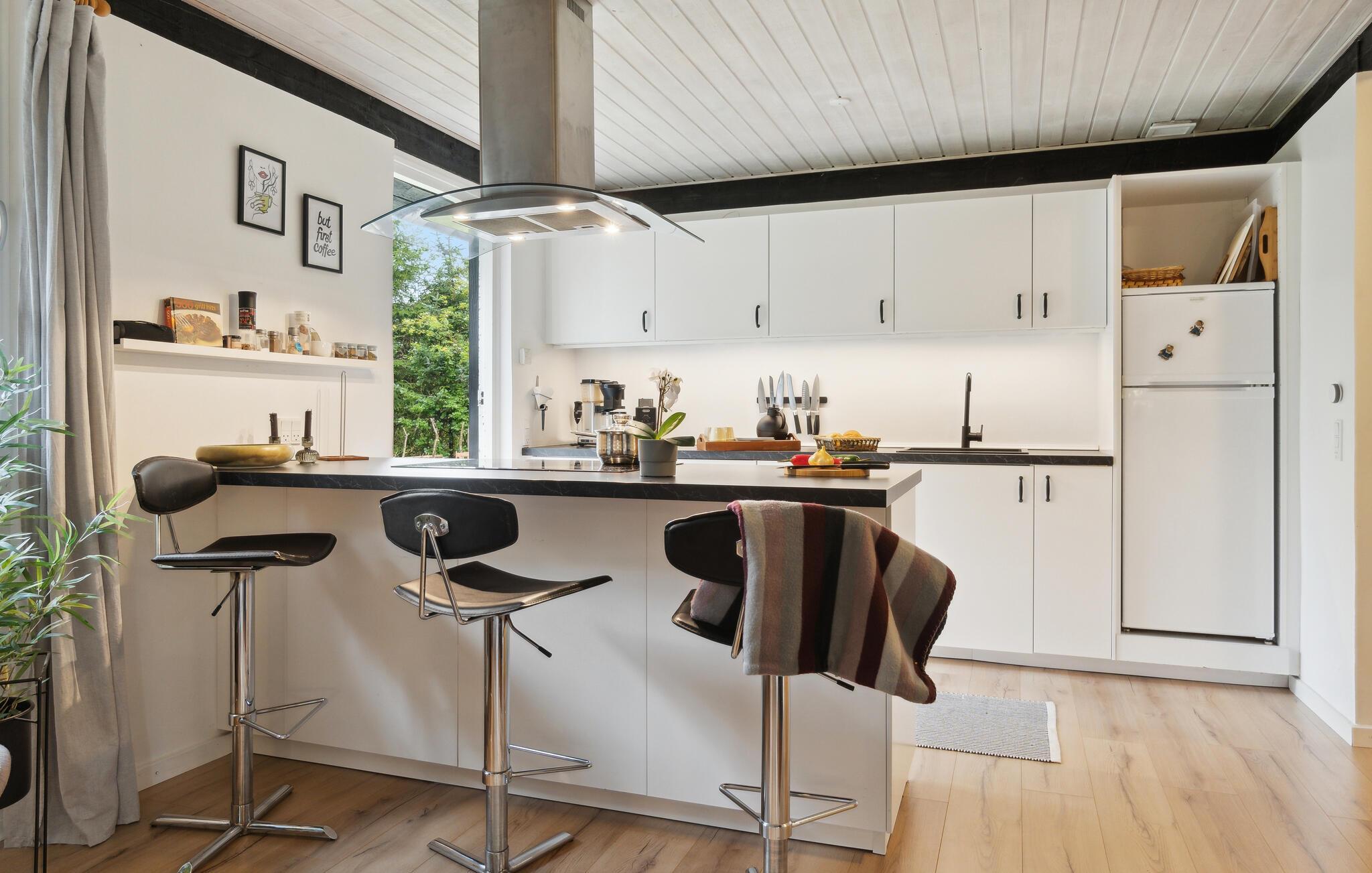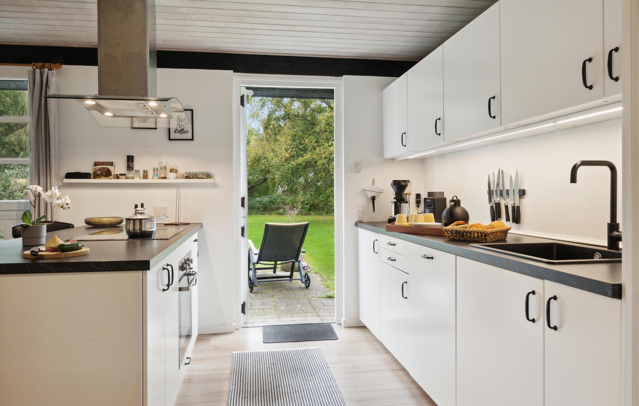 I midten af ??huset er den åbne opholdsstue og køkkenet med spiseplads, hvor I kan tilbringe hyggelige aftener med familie eller venner. Der er en madlavningsø i køkkenet, så I kan sidde her, mens feriekokken tilbereder lækre måltider til alle. På kølige dage spreder brændeovnen behagelig varme og ekstra hygge. Huset tilbyder også plads i tre soveværelser og et badeværelse.
