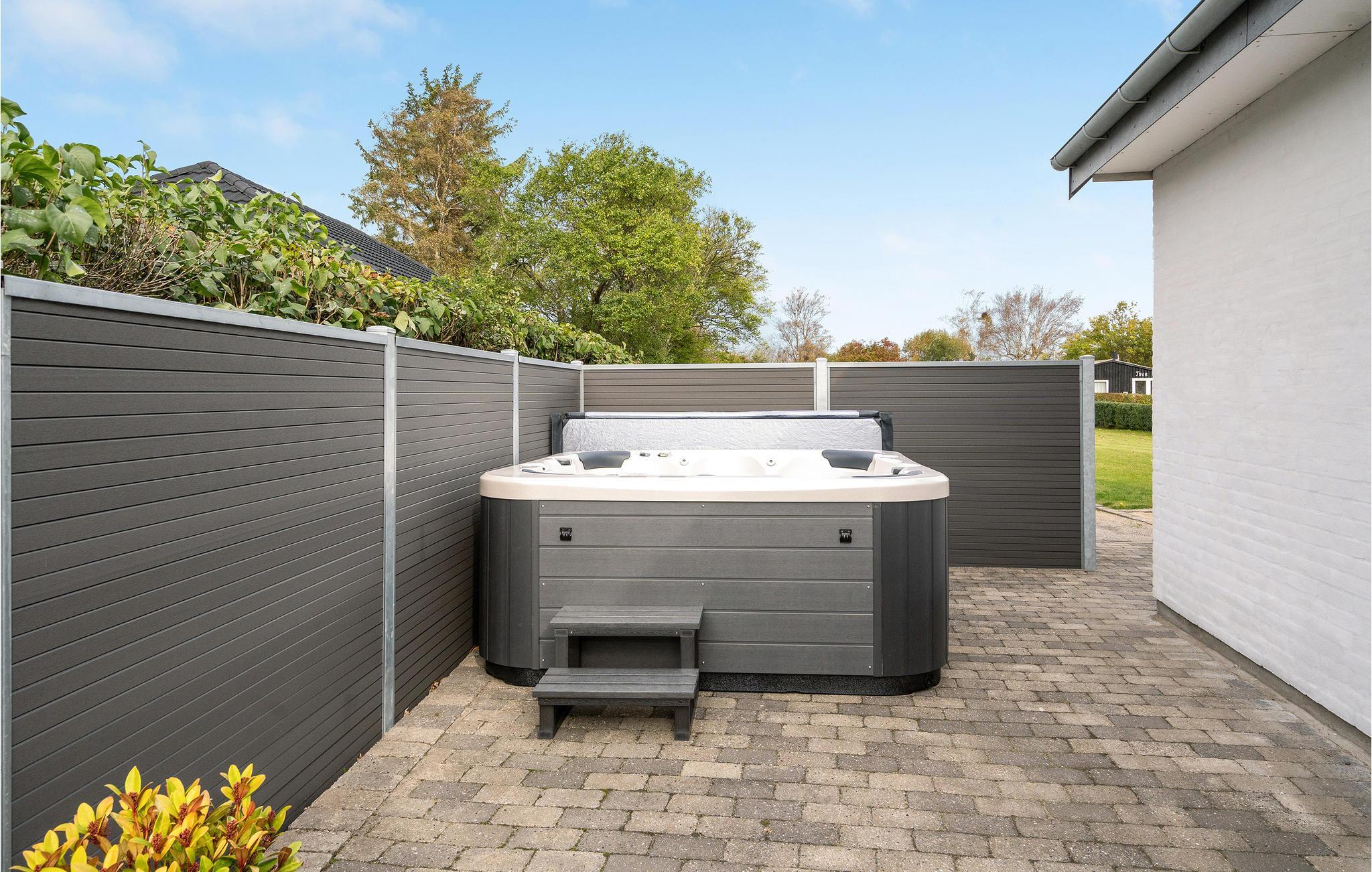 Dette praktiske, rummelige og velindrettede hus skaber dejlige rammer om en afslappende ferie. Start dagen med en kop morgenkaffe på altanen. Det store, veludstyrede køkken lægger op til at tilberede lækre feriemåltider i fællesskab, som derefter kan nydes ved spisebordet eller ude på terrassen. Her kan de voksne sole sig eller læse en god bog, mens børnene spiller fodbold, gynger eller leger i sandkassen i haven. Afslut en skøn feriedag i udespaets dejligt varme vand.