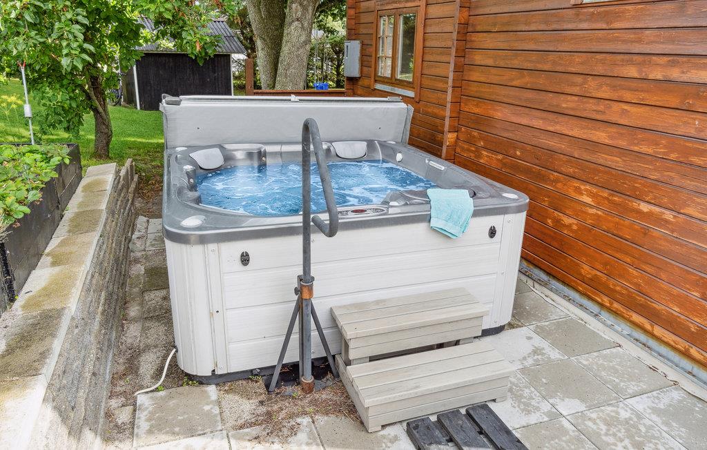 Hyggeligt feriehus i Øster Hurup med terrasse og stor udendørs jacuzzi til afslapning.