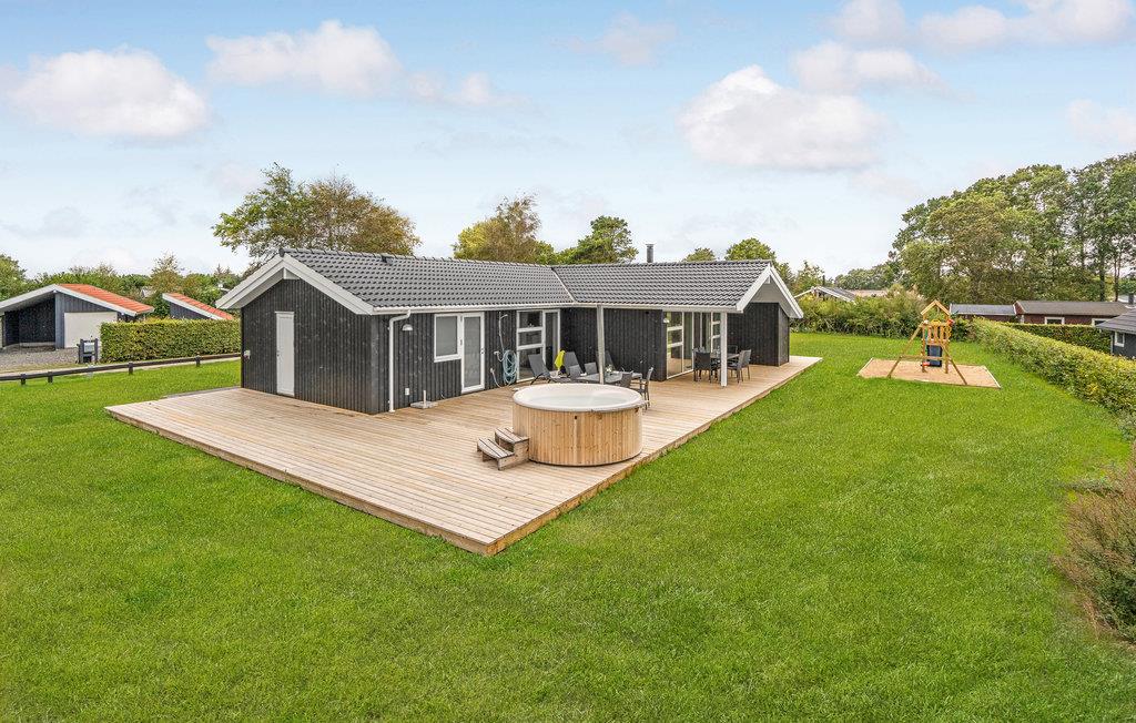Skønt feriehus i Øster Hurup med aktivitetsrum, vildmarksbad og panoramudsigt tæt på Kattegat.