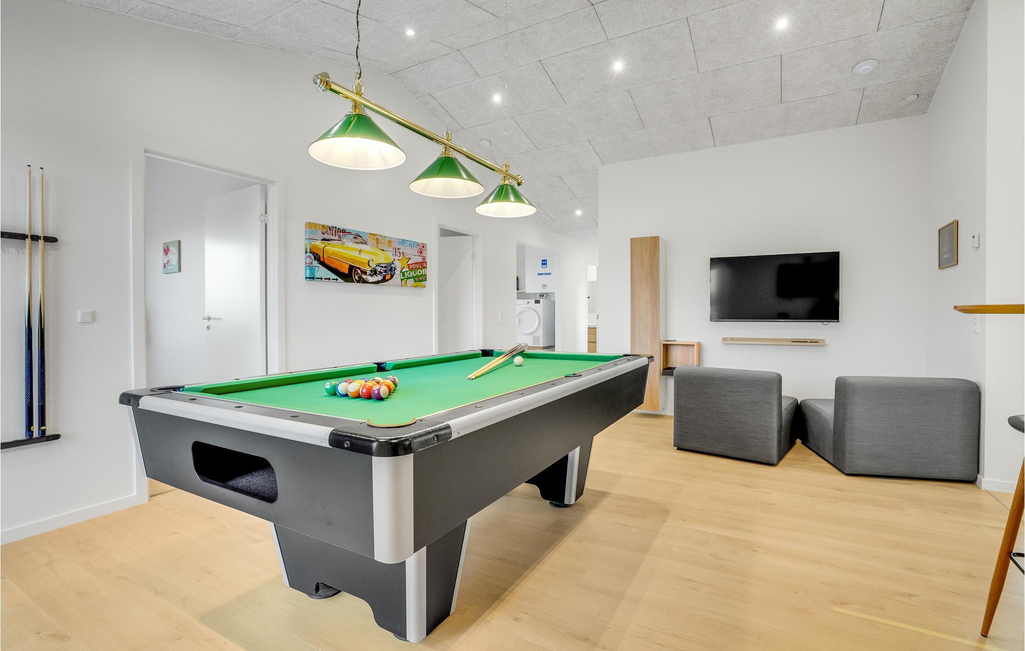 Dette rummelige hus er lyst og indbydende og byder jer velkommen med alt, hvad I behøver for en afslappende pause fra hverdagen med hele familien. Her kan både store og små familiemedlemmer få glæde af opholdet. Tilbring fornøjelige timer i poolen med en smuk udsigt til det fri, slap af i spabadet og tag en forfriskende dukkert i koldtvandsbassinet efter en beroligende tur i saunaen. Glæd jer til hyggelige aftener, når I vender tilbage fra dagens oplevelser. Sæt jer godt til rette ved spisebordet, lad middagen glide over i en spilleaften, dyst i bordfodbold eller billard, eller nyd lange samtaler i godt selskab.